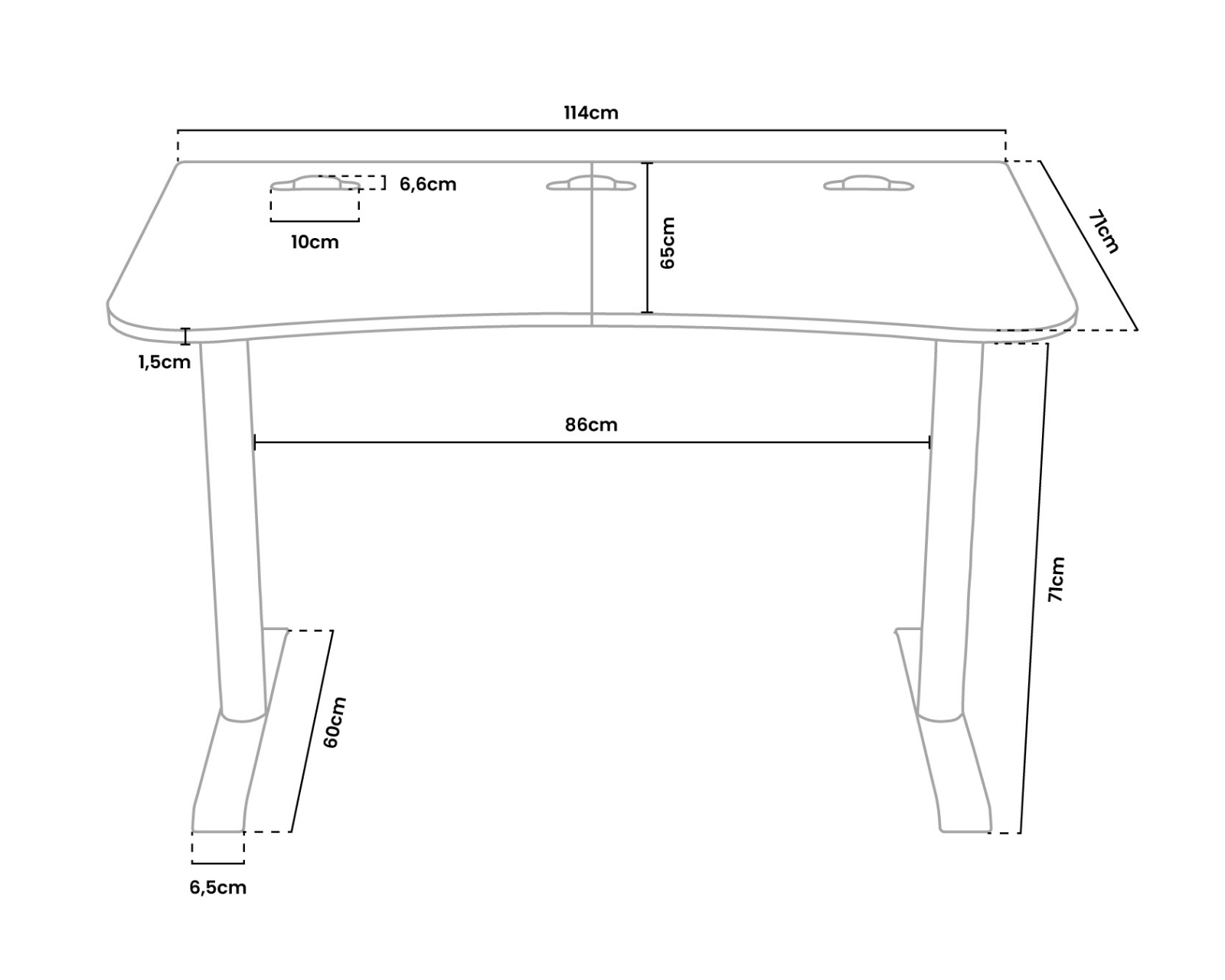 Arena ist ein kleines Schreibtisch von Arozzi, das Funktionalität für Gaming und Büroarbeit bietet. Mit einem Gewicht von 20,4 kg steht es stabil und hat eine maximale Belastung von 65 kg, was es geeignet für Geräte wie Computer und Gaming-Ausrüstung macht. Die Maße des Tisches sind 71 cm hoch, 114 cm breit und 71 cm tief, was viel Platz für eine angenehme Arbeitsumgebung bietet.Der Tisch besteht aus langlebigen Materialien und ist mit Fokus auf einfache Kabelverwaltung gestaltet, was zu einem organisierten Setup beiträgt. Er hat eine neutrale schwarze Farbe, die in die meisten Umgebungen passt, und es gibt keine Beleuchtung, was ein dezentes Aussehen gewährleistet. Die feste Konstruktion bedeutet, dass der Tisch nicht höhenverstellbar ist, doch seine Maße bieten eine perfekte Arbeitshöhe für gemeinsame Nutzungsbereiche.