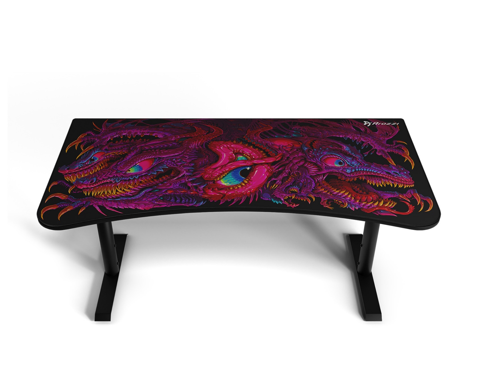 Arena Gaming Schreibtisch - Large - Crawling Chaos ist eine Schreibtischlösung von Arozzi, die für Gamer entwickelt wurde, die nach einer funktionalen und geräumigen Arbeitsfläche suchen. Er hat eine Größe von 160 cm in der Breite, 82 cm in der Tiefe und eine verstellbare Höhe zwischen 71 und 81 cm, wodurch es einfach ist, den Schreibtisch an die Bedürfnisse des Benutzers anzupassen. Die maximale Belastbarkeit beträgt 80 kg, was eine solide Plattform für Computer und Zubehör bietet.Die Konstruktion des Schreibtisches ist robust und für eine langfristige Nutzung ausgelegt. Er bietet eine effektive Kabelverwaltung, die zu einer sauberen und organisierten Arbeitsfläche beiträgt. Der Schreibtisch ist in drei verschiedenen Farben erhältlich: Schwarz, Rot und Blau, was es einfach macht, ihn mit der restlichen Einrichtung abzustimmen. Es gibt keine integrierte Beleuchtung, was zu einem minimalistischeren Design beiträgt. Die gesamte Einheit wiegt 39 kg, was ein stabiles und zuverlässiges Gefühl vermittelt.