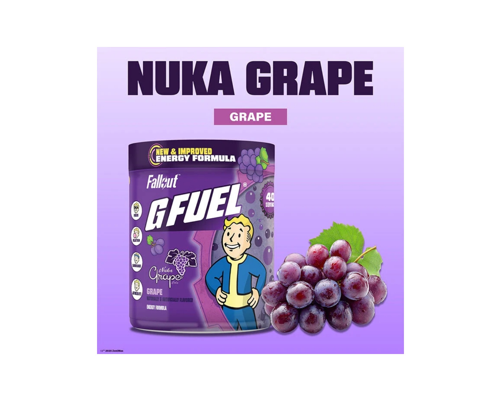 Das Getränk ist zudem mit Antioxidantien angereichert, die zur erhöhten Ausdauer während längerer Arbeits- oder Spielzeiten beitragen können. Mit einem schwarz gestalteten Behälter und einem einzigartigen Nuka Grape-Flaschenverschluss erhält der Nutzer auch ein Sammlerstück für diejenigen, die es möchten.
