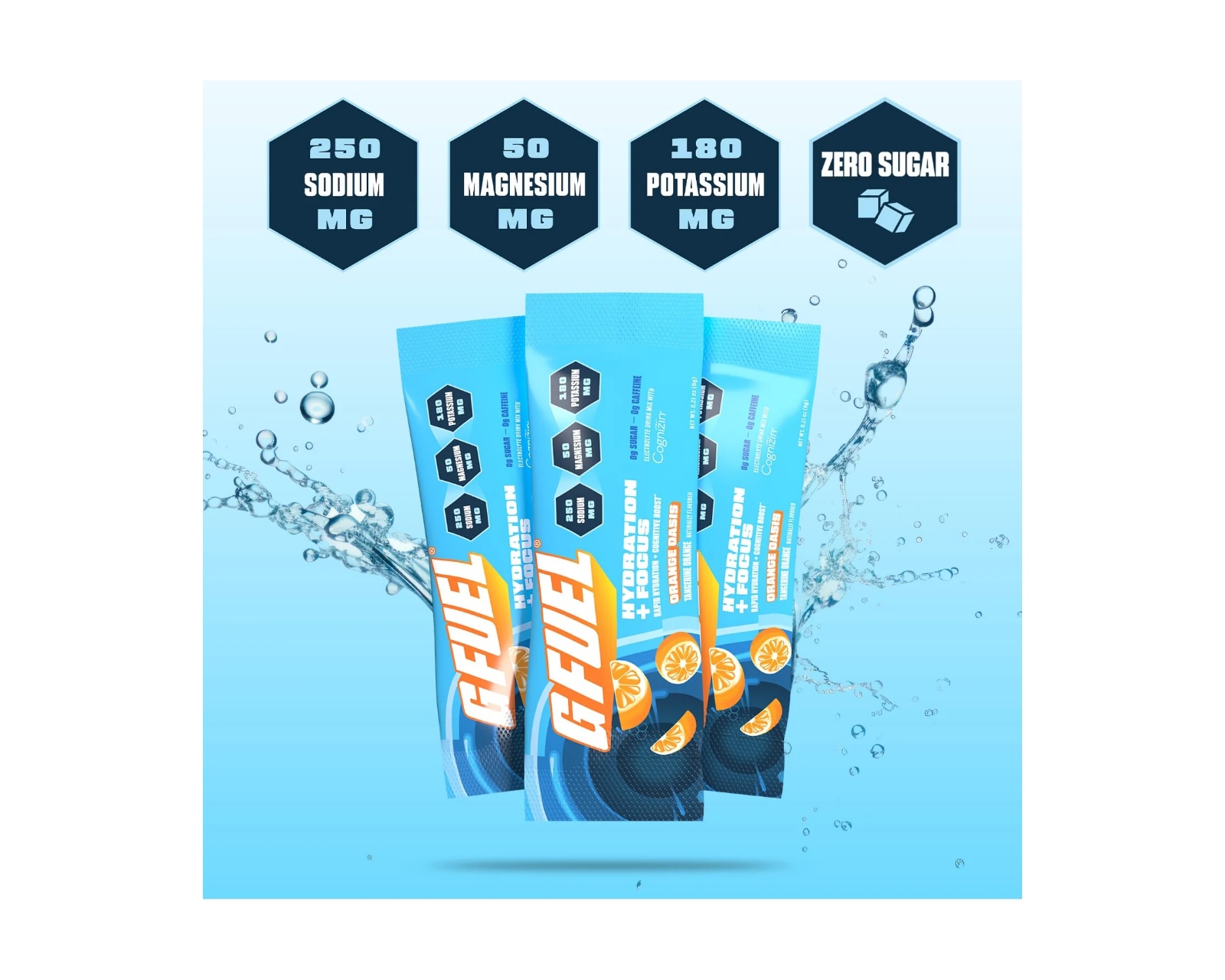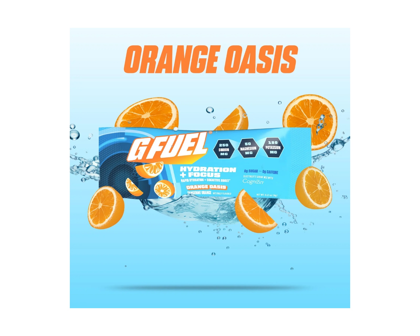 Orange Oasis Hydration + Focus Pack ist ein Elektrolytpulverprodukt von G Fuel, das für sofortige Hydration und Konzentration gedacht ist. Mit einer einzigartigen Mischung aus Elektrolyten und nootropen Substanzen ist dieses Pulver zuckerfrei und bietet einen Geschmack von orange Oase. Jede Verpackung enthält 20 Portionen, was es geeignet für die Nutzung bei verschiedenen Outdoor-Aktivitäten oder während Training und Spielen macht.Das fortschrittliche Elektrolytpulver enthält eine gut ausgewogene Zusammensetzung von fünf Schlüssel-Elektrolyten, um optimale Hydration und geistige Klarheit zu unterstützen. Jede Portion liefert 250 mg Natrium, 50 mg Magnesium und 180 mg Kalium, was zur schnellen Wiederherstellung der Hydration beiträgt, ohne einen salzigen Nachgeschmack. Das Pulver enthält auch Cognizin, um Aufmerksamkeit und Gedächtnis zu unterstützen. Orange Oasis hat einen niedrigen Kaloriengehalt von nur 15 Kalorien pro Portion.