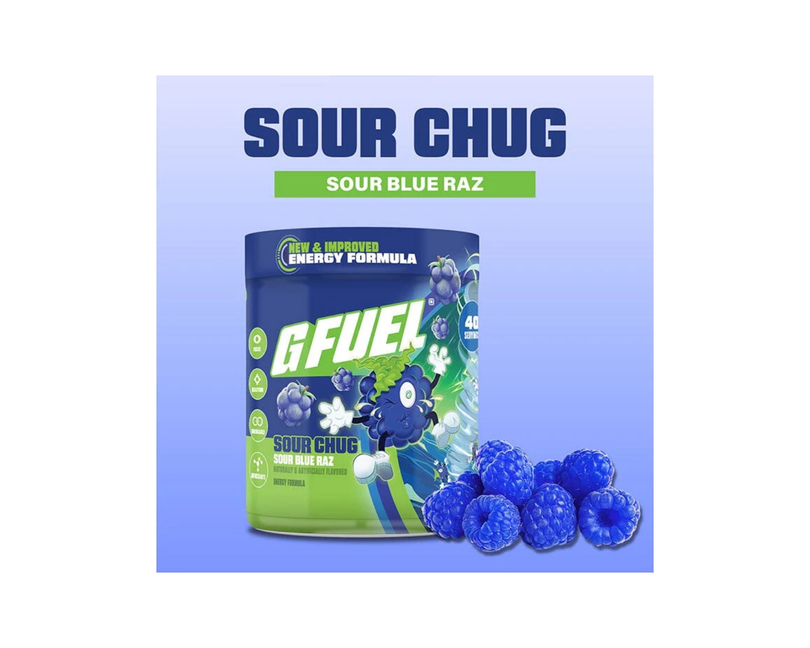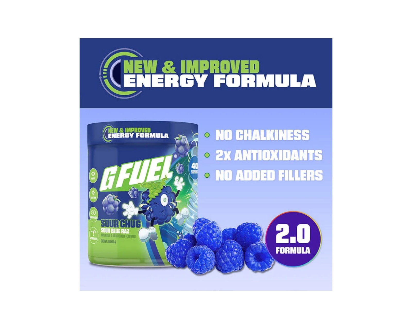 Sour Chug 2.0 von G FUEL kombiniert einen erfrischenden Geschmack mit hohem Koffeingehalt.Es enthält 140 mg Koffein pro Portion und bietet 40 Portionen.