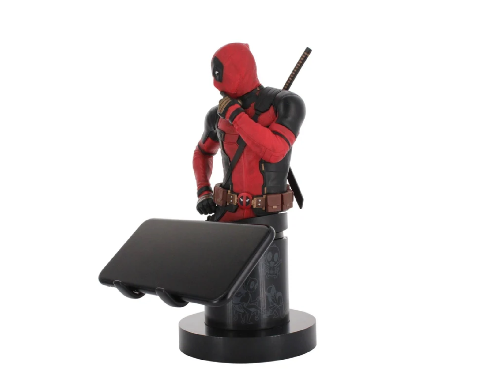 Deadpool 3 Cable Guys REST ist eine Handy- und Controllerhalterung von Cable Guys für Smartphones, Fernbedienungen und Gamecontroller. Das Design zeigt Deadpool in einer typischen Pose und ist kompatibel mit der PlayStation 5 DualSense der nächsten Generation, der Xbox Series S/X und den meisten Smartphones, einschließlich iPhones. Das Produkt richtet sich an Deadpool-Fans und Gamer, die eine funktionale und stylische Halterung für ihre Geräte suchen.Zusammenfassung