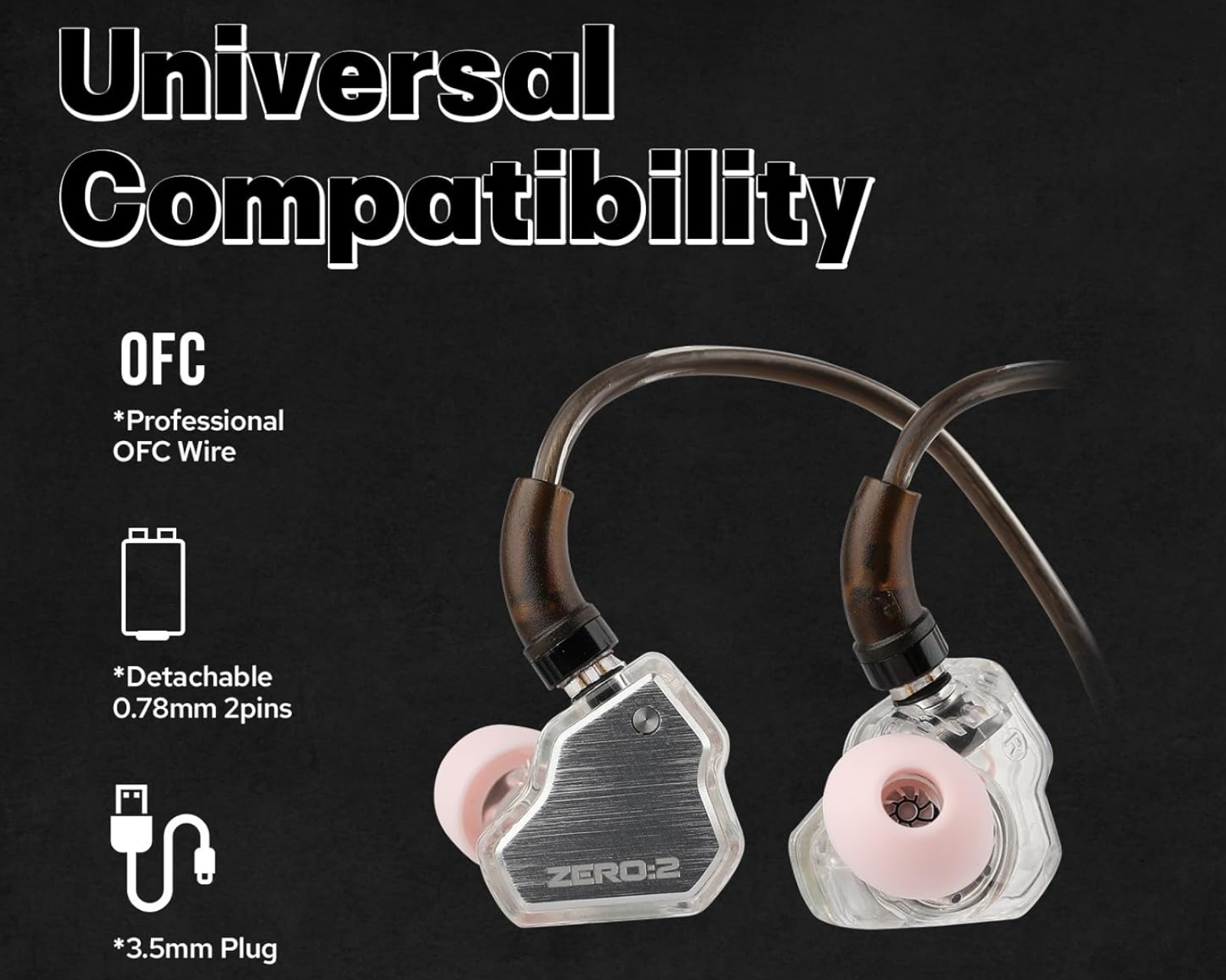 Zero 2 IEM-Kopfhörer von 7Hz, die fortschrittliche Audiotechnik mit einem benutzerfreundlichen Design kombinieren. Diese In-Ear-Monitore (IEM) bieten einen neu entwickelten 10-mm-Dynamiktreiber mit doppeltem Gehäuse, der einen Frequenzbereich von 10 Hz bis 20 kHz liefert. Die verbesserte PU+Metallverbundmembran sorgt für eine reaktive und kraftvolle Klangwiedergabe mit verbessertem Bass, was ein mitreißendes Hörerlebnis bietet.Die Verarbeitungsqualität des Zero 2 ist bemerkenswert mit einem abnehmbaren Kupferkabel, das versilbert ist, um die Klangübertragung zu verbessern. Das Kabel ist mit einer koaxialen Struktur und einer speziellen Wickeltechnik gestaltet, die seine Haltbarkeit erhöht. Der neue Treiber bietet eine klare Klangbalance, während die tiefen Frequenzen um 3 dB angehoben wurden, um Hörer zufriedenzustellen, die ein dynamischeres Klangbild wünschen. Das ergonomische Design sorgt für Komfort, auch während längerer Hörsessions.