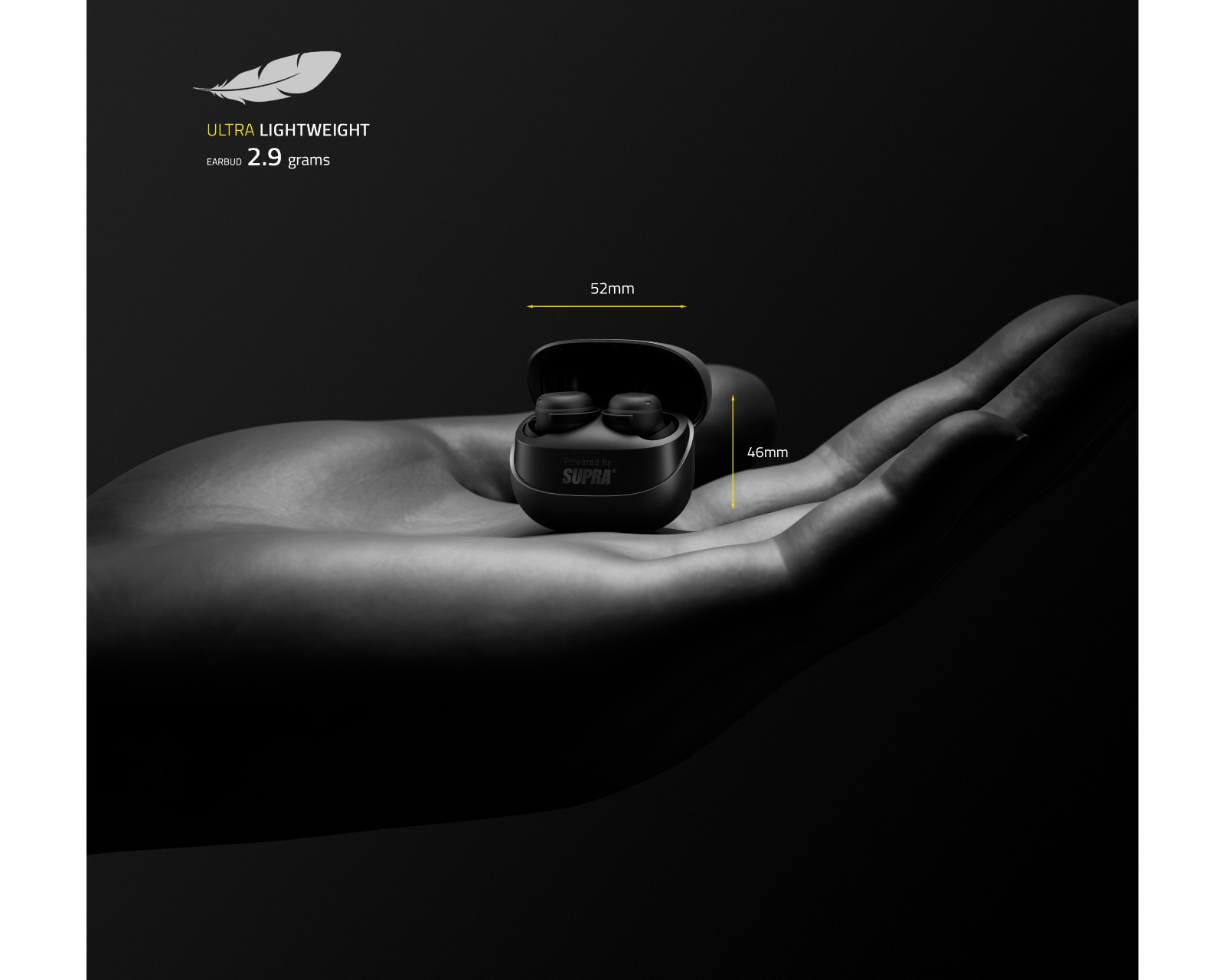 SUPRA ZERO-TX2 Mini TWS sind ultrakompakte In-Ear-Kopfhörer von Supra. Sie haben ein Design, das ein geringes Gewicht von nur 2,9 Gramm pro Ohrhörer ermöglicht und bieten über 25 Stunden Spielzeit über das mitgelieferte Ladeetui von 30 Gramm. Die Kopfhörer sind IPX5-zertifiziert, um Schweiß und Regen standzuhalten und eignen sich sowohl für das Fitnessstudio als auch für die Arbeit.ZERO-TX2 Mini sind aus militärklassifizierten Materialien gefertigt, die Haltbarkeit und Robustheit garantieren. Der Klang wurde gemäß SUPRAs preisgekrönter Klangdesign entwickelt, um eine kraftvolle und dynamische Klangwiedergabe mit beeindruckendem Bass zu liefern. Doppelte ENC-Mikrofone mit MEMS™-Technologie tragen dazu bei, störende Umgebungsgeräusche zu minimieren, was eine klare Sprachübertragung ermöglicht. Mit intelligenten Touchsteuerungen kann der Benutzer einfach Anrufe und Musik steuern sowie Sprachassistenten wie Google™ oder Siri™ aktivieren. Darüber hinaus unterstützen die Kopfhörer die TWS Mono-Funktion, um einen Kopfhörer gleichzeitig zu verwenden.