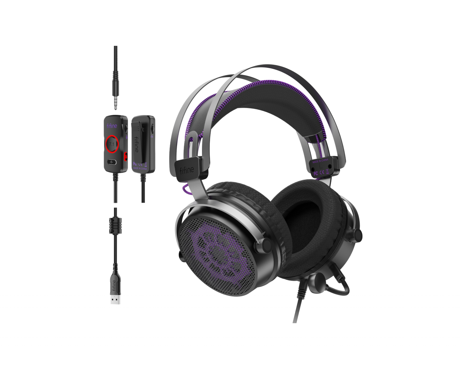 FIFINE H18V ist ein Gaming-Headset von Fifine, das ein offenes akustisches Design und hochwertige 53-mm-Treiber für überlegene Klangwiedergabe bietet. Dieses Headset ist so konzipiert, dass es Gamern einen taktilen Vorteil im Spiel verschafft, mit einem Fokus auf Klangdetails, die über den Ausgang eines Matches entscheiden können. Wichtige Funktionen umfassen ein abnehmbares Mikrofon, das klare Kommunikation garantiert, und einen ergonomischen, anpassungsfähigen Bügel für langanhaltendes Spielen.Die Verarbeitungsqualität des H18V ist auf Komfort und Haltbarkeit optimiert, mit einem leichten Design und einer doppelten Schicht im Bügel, die eine gleichmäßige Gewichtsverteilung gewährleistet. Die extra dicken Schaumstoff-Ohrpolster sind sowohl weich als auch belüftet, was zu einem angenehmen Gefühl während langer Spielsitzungen beiträgt. Die im Lieferumfang enthaltene USB-Steuerung ermöglicht eine schnelle Anpassung der Lautstärke und der Mikrofonlautstärke, was es einfach macht, während intensiver Momente fokussiert zu bleiben. Mit einem 3,5-mm-Klinkenstecker und USB-A-Anschluss kann das Headset problemlos an mehrere Plattformen wie PC, PlayStation und Xbox angeschlossen werden.