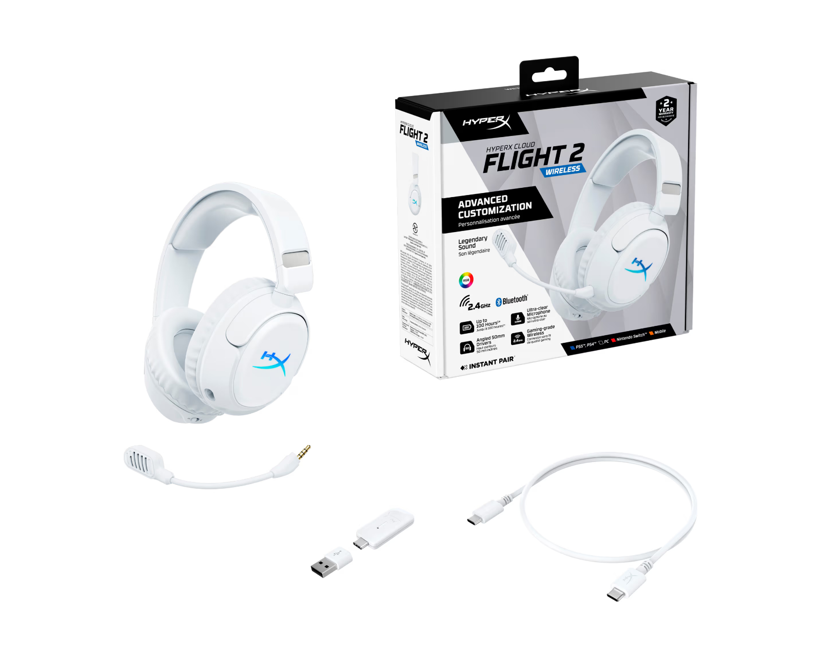 Cloud Flight 2 ist ein kabelloses Gaming-Headset von HyperX, das entwickelt wurde, um Gamern ein nahtloses Erlebnis mit plattformübergreifender Kompatibilität und doppelten Anschlussmöglichkeiten zu bieten. Mit leistungsstarken 50-mm-Treibern und einer außergewöhnlichen Batterielaufzeit von bis zu 150 Stunden ist dieses Headset für langanhaltende Spielsitzungen optimiert und bietet sowohl Klarheit als auch Präzision im Klangerlebnis. Die doppelte Mikrofonlösung sorgt für klare Kommunikation während des Spiels.Die Verarbeitungsqualität des Cloud Flight 2 ist ausgezeichnet, mit weichem Memory-Schaum und 90-Grad drehbaren Ohrmuscheln, die die Aufbewahrung erleichtern und den Komfort bei längerem Gebrauch erhöhen. Die doppelte kabellose Verbindung über 2,4 GHz und Bluetooth 5.3 bietet Flexibilität bei den Verbindungen und niedrige Latenz. RGB-Beleuchtung und magnetische, austauschbare Platten ermöglichen eine Anpassung des Headsets an den persönlichen Stil, während die HyperX NGENUITY-Software weitere Möglichkeiten bietet, Beleuchtungs- und Klangeinstellungen anzupassen.