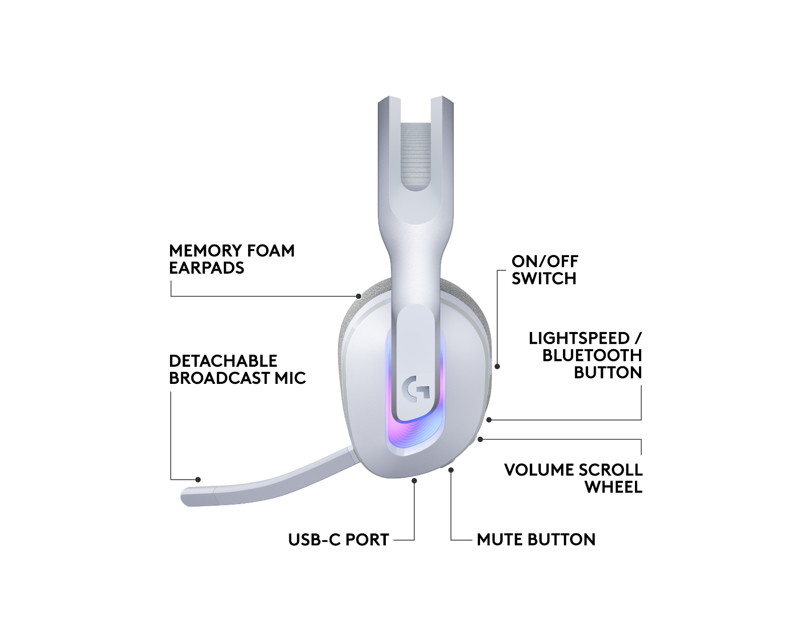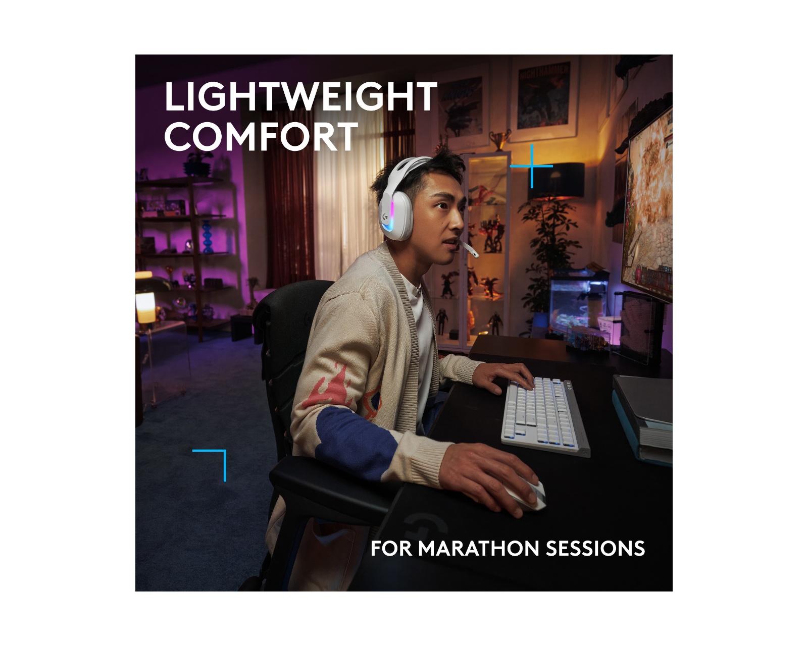 Gehen Sie mit dem kabellosen Gaming-Headset Logitech G522 Lightspeed in jedes Spiel und seien Sie Ihr authentischstes Ich. Dies ist nicht nur ein Headset; Es ist ein persönliches Statement-Stück, verpackt in ein auffälliges und stromlinienförmiges Design mit dynamischem LIGHTSYNC RGB, mit dem Sie Ihren Look an jede Stimmung oder jedes Spiel anpassen können ? mit satten 16,8 Millionen leuchtenden Farben auf Knopfdruck. Sobald Sie es aufsetzen, umhüllen Sie die weichen, abgerundeten Ohrpolster und das waschbare Kopfband mit wolkenartigem Komfort, selbst während der längsten Gaming-Sessions.Aber es ist mehr als nur praktisch. Egal, ob Ihr Zimmer vor Lärm summt oder Sie unterwegs sind, G522 bietet nahtlose Freiheit mit ultraschnellem LIGHTSPEED Wireless für den PC, Bluetooth für Mobilgeräte und einer kabelgebundenen Option für endlose Nächte. Tauchen Sie ein in die Welt des Spiels mit immersiven und synchronisierten PRO-G-Audiotreibern, die kraftvolle Bässe, kristallklare Höhen und satte, detaillierte Klanglandschaften liefern. Und wenn Zusammenarbeit oder Strategie entscheidend sind, sorgt das Mikrofon in Sendequalität mit Blue VO!CE-Technologie dafür, dass jeder Befehlsanruf und Stream so klar klingt wie Ihre Ambitionen.