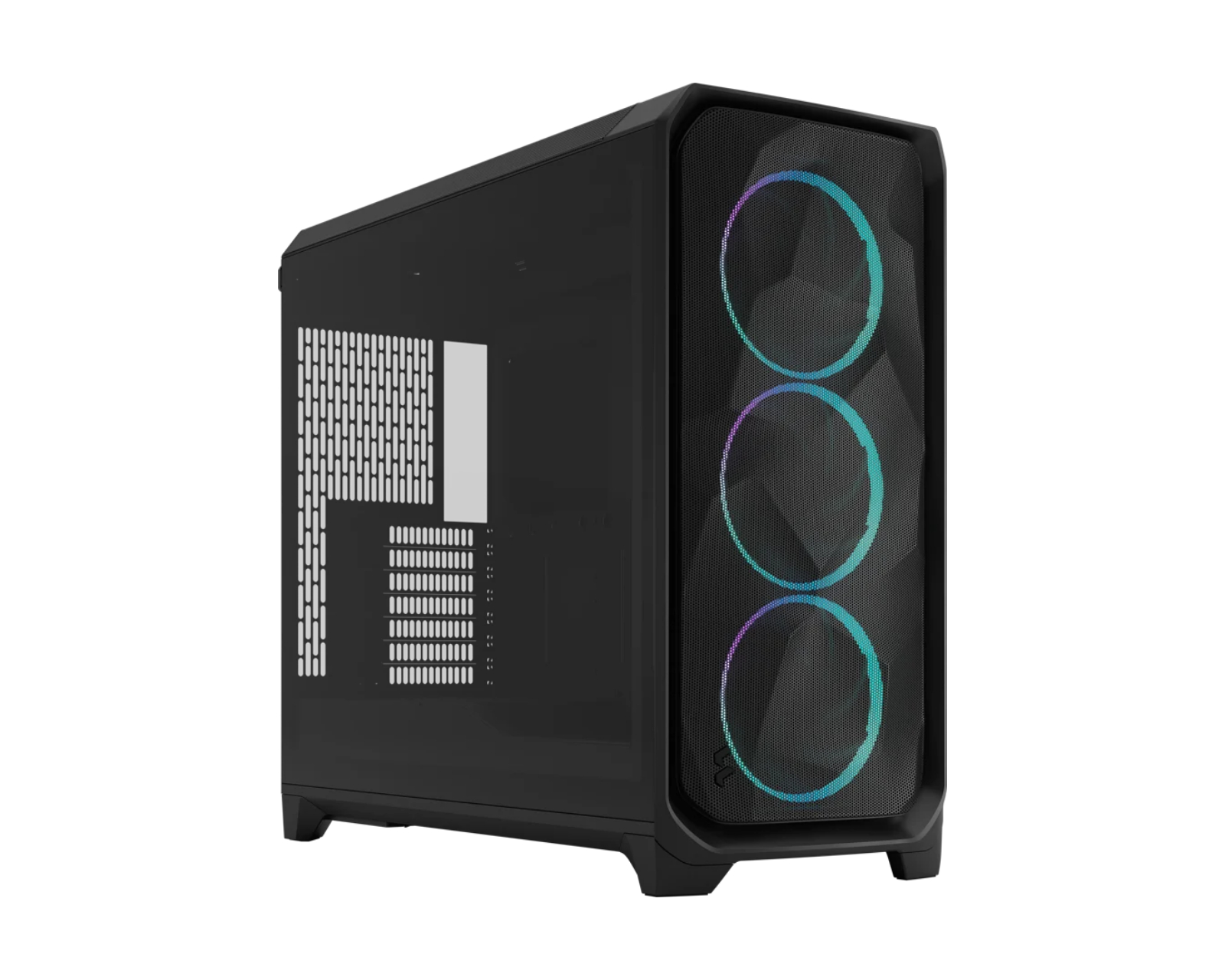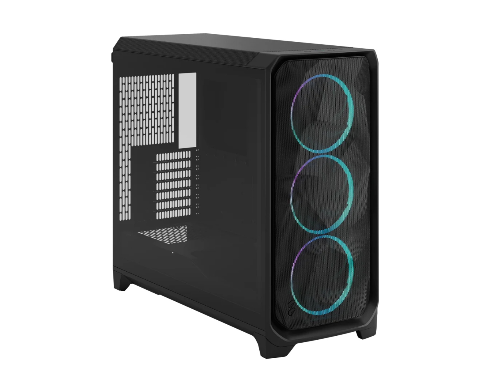 Meshify 3 XL ist ein Computerkomponenten-Gehäuse von Fractal Design mit Fokus auf fortschrittliche Kühlung und aerodynamisches Design. Mit einer geräumigen Konstruktion und verbesserter Belüftung bietet es Platz für Grafikkarten von bis zu 512 mm und Unterstützung für E-ATX-Motherboards. Es ist außerdem mit drei Momentum-Lüftern ausgestattet und ist in einer Variante mit Ambience Pro RGB-Beleuchtung erhältlich.Das Gehäuse hat eine robuste Konstruktion mit einer Frontplatte, die von Bergformen inspiriert ist, und bietet ein effizientes Luftstromdesign mit einem integrierten Luftleiter, um die Komponenten kühl zu halten. Es verfügt über leicht zugängliche Paneele für einfachere Montage, einschließlich einer gleitenden Oberseite mit einem Stoffstück. Für die Beleuchtung kann der Benutzer das RGB-Licht einfach über einen Konfigurationsdienst anpassen, ohne dass ein Download erforderlich ist. Meshify 3 XL enthält auch drei Hochleistungs-Momentum 14-Lüfter mit LCP-Blättern und echten FDB-Lagern für einen leisen Betrieb und effektive Kühlung.