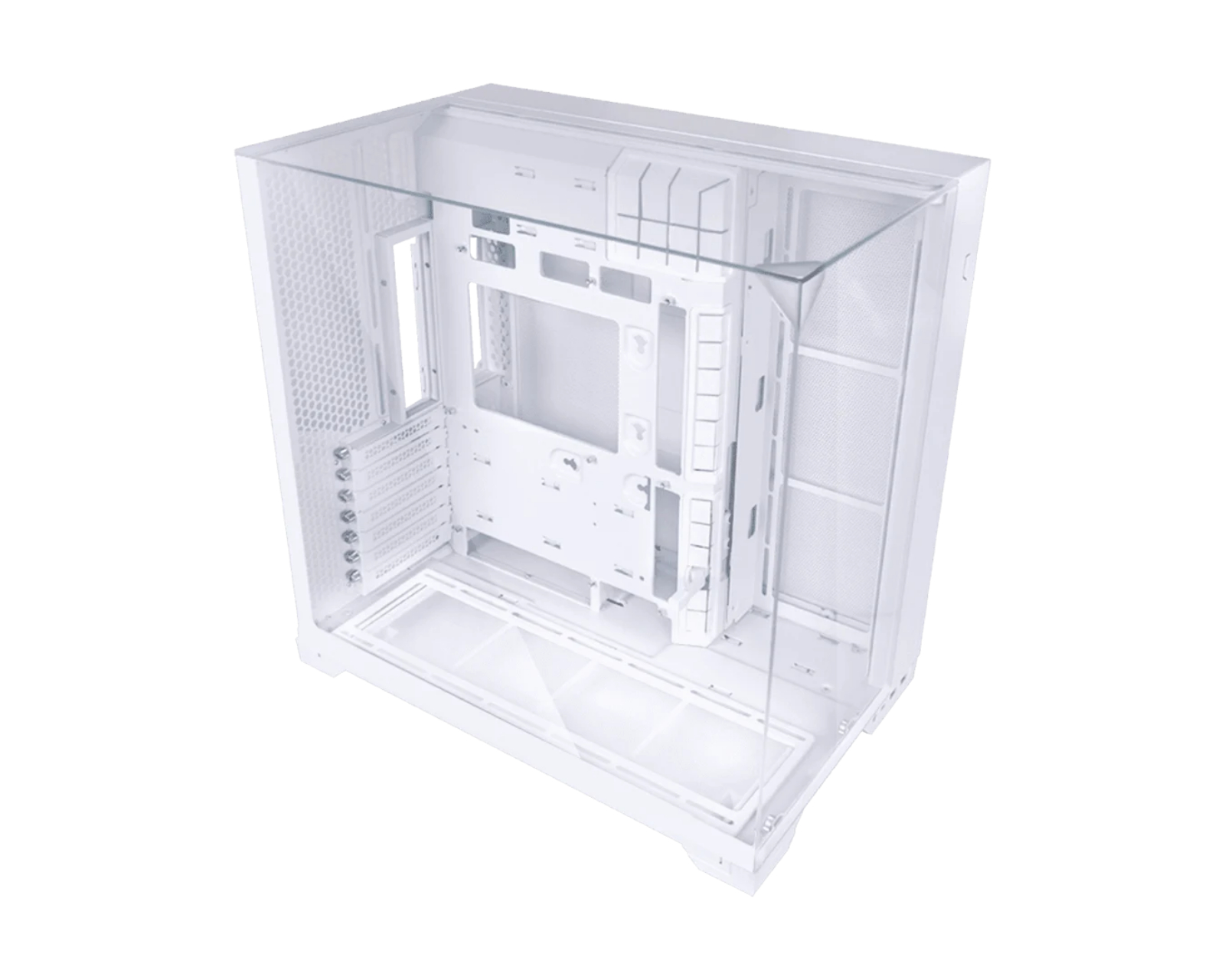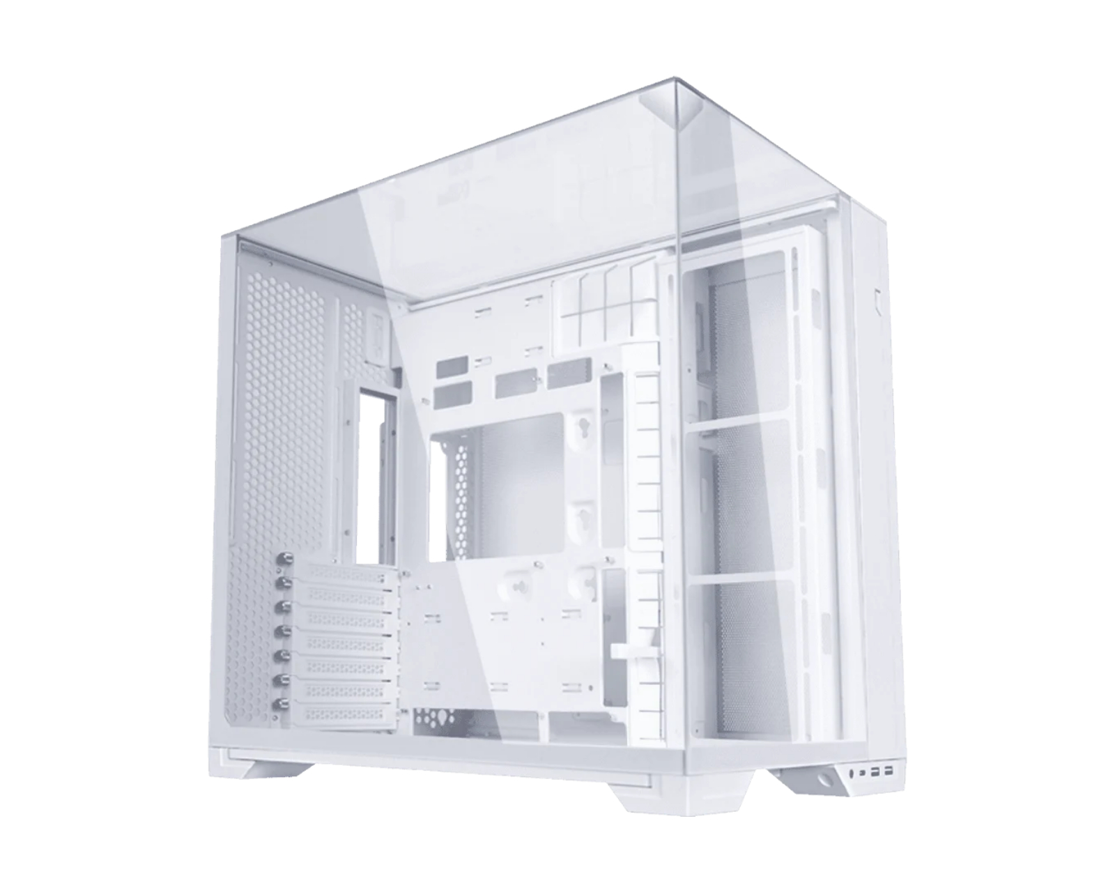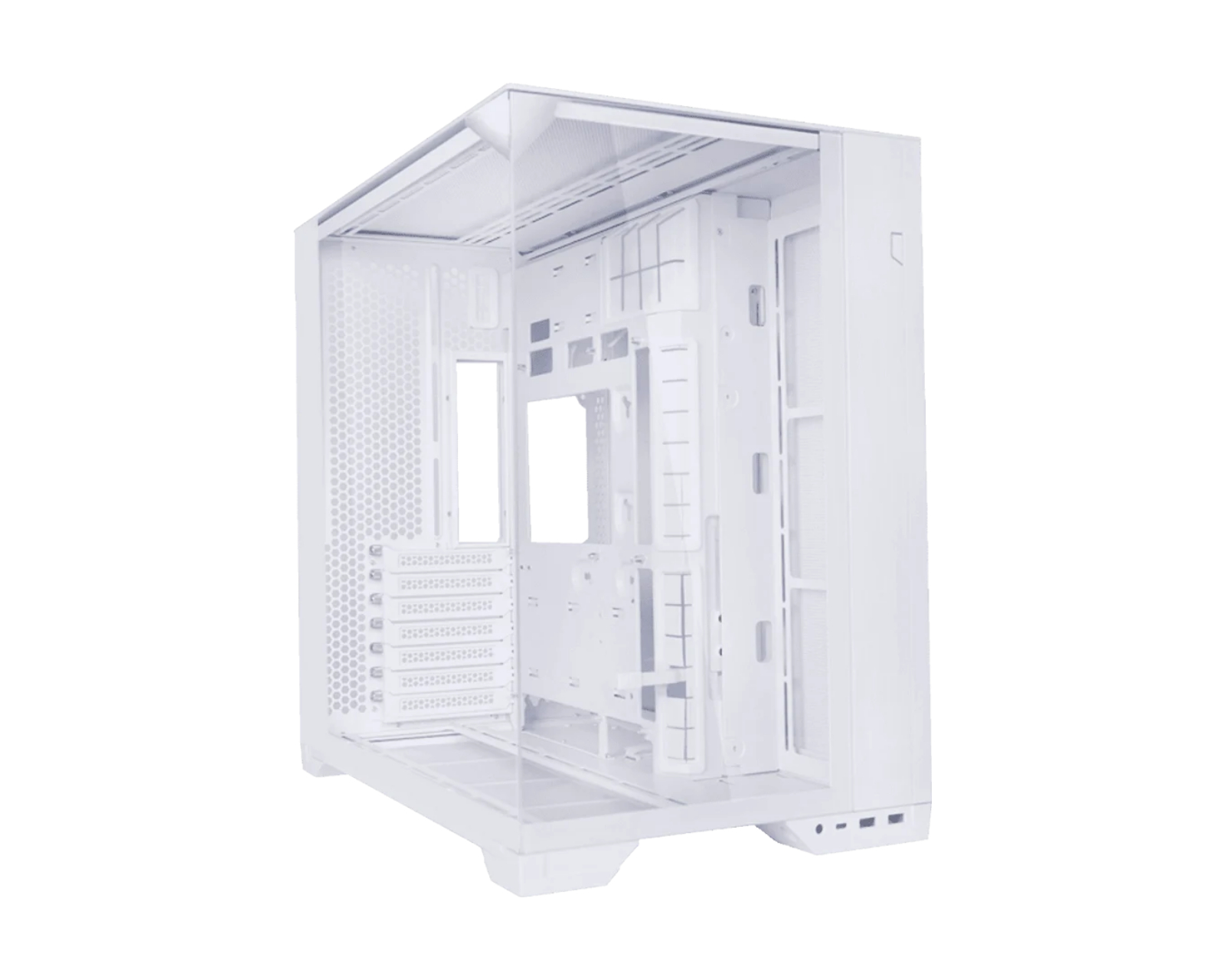 O11 Vision Compact ist ein Gehäuse von Lian Li, das dafür entworfen wurde, deinen Gaming-PC auf dem Schreibtisch zur Schau zu stellen. Es bietet ein kompaktes Format mit Platz für leistungsstarke Hardware und effektive Kühlung. Das Gehäuse verfügt über drei Seitenpaneele aus gehärtetem Glas, die eine klare Sicht auf die installierten Komponenten bieten. Vision Compact kommt mit einem zusätzlichen Paneel, das die Kühlmöglichkeiten erweitert.Das Gehäuse ist ein kompaktes Midi-Tower-Gehäuse in Weiß mit gehärtetem Glas auf drei Seiten, und es ist kompatibel mit Mainboards in den Formaten E-ATX, ATX, Micro-ATX oder Mini-ITX. Grafikkarten mit einer Länge von bis zu 408 mm und ATX-Netzteile bis zu 220 mm passen hinein. Es kann bis zu elf 120-mm-Lüfter im Mesh-Modus oder acht im Vision-Modus aufnehmen. Drei Montageplätze für 360-mm-Radiatoren ermöglichen eine effektive Kühlung. Ein intelligentes Zweikammerdesign sorgt für eine bessere Luftzirkulation und ein ordentliches Aussehen. Es gibt auch Platz für zwei 2,5-Zoll-SSDs und zwei 2,5-/3,5-Zoll-HDDs. Die I/O-Panel hat 2x USB-A 3.0 und 1x USB-C für schnellen Zugriff.