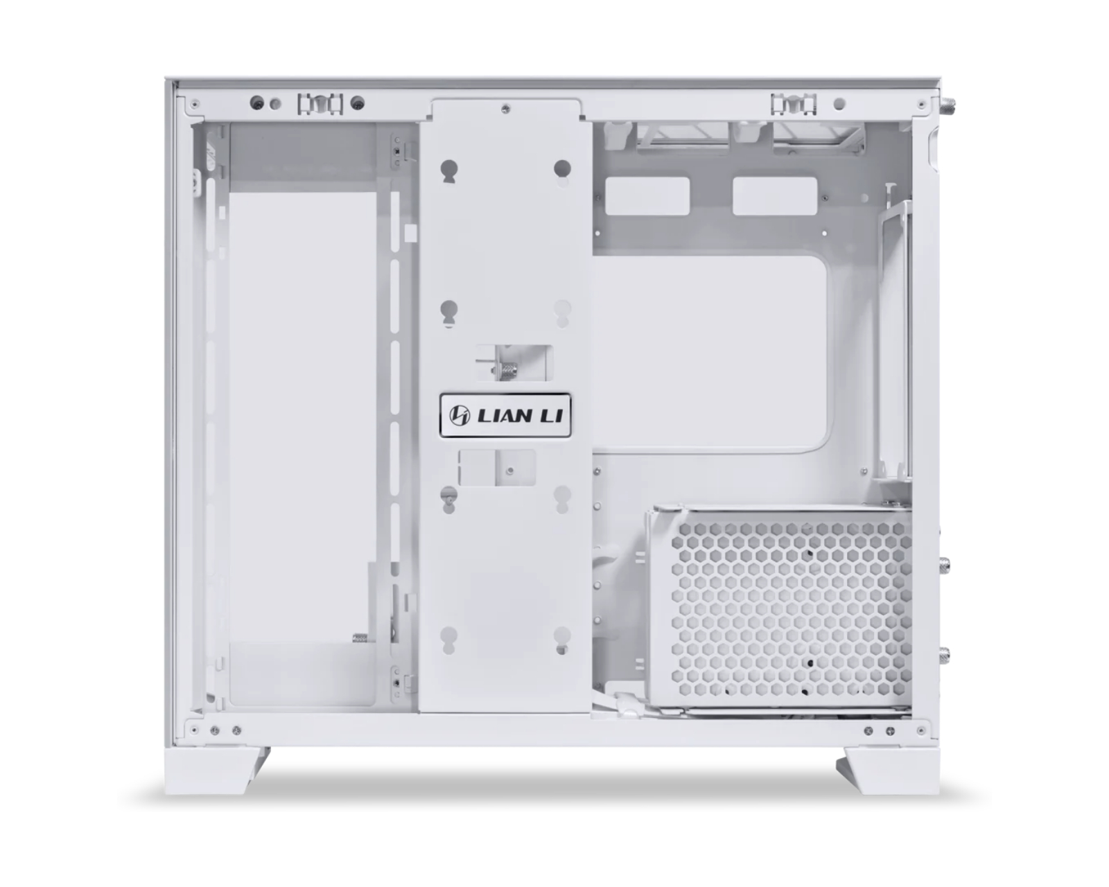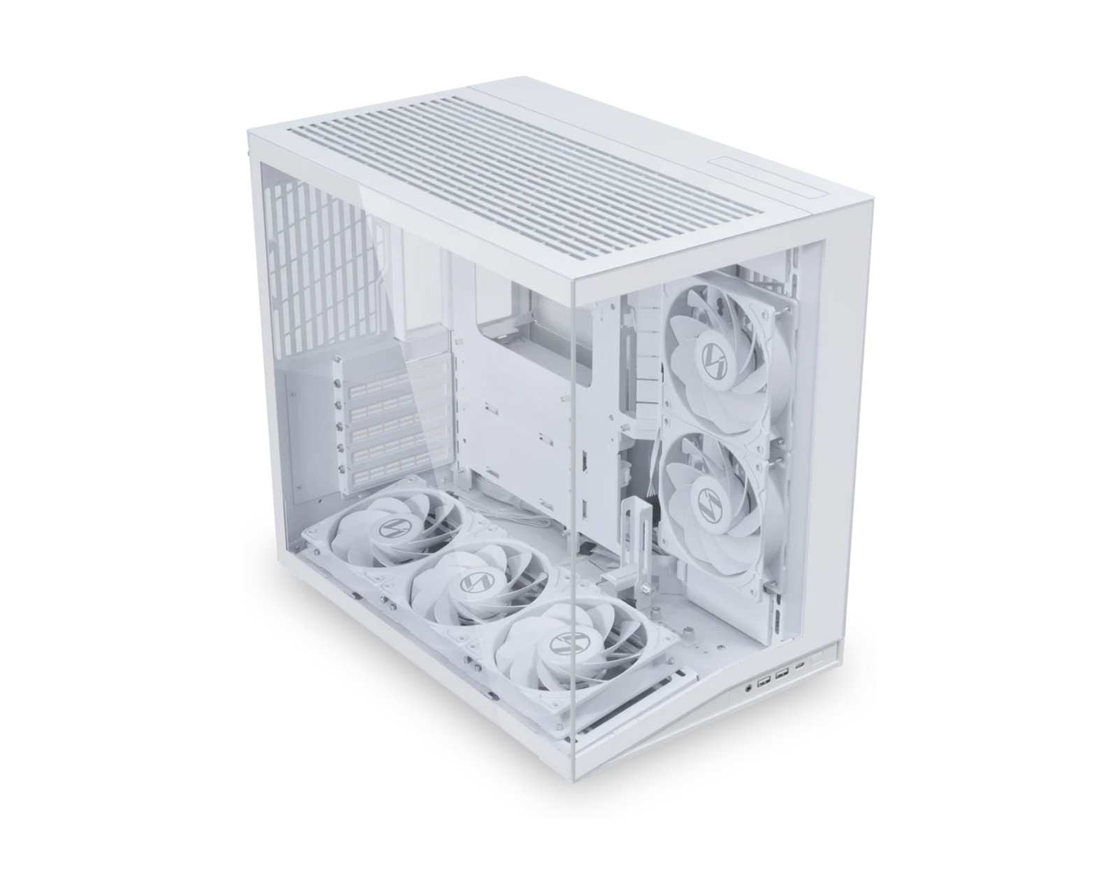 Lian Li O11D Mini V2 Flow ist ein Gehäuse von Lian Li, das trotz seiner kompakten Größe einen großen Innenraum bietet. Es ist so gestaltet, dass sowohl Luft- als auch Wasserkühlung installiert werden können, und ermöglicht die vertikale Montage von Grafikkarten. Ausgestattet mit gehärtetem Glas an den Seiten und der Front, ist es auch einfach, Ihre Komponenten zu präsentieren.Im Inneren des Gehäuses gibt es großzügigen Platz für hochleistungsfähige Hardware, was es ermöglicht, Grafikkarten von bis zu 400 mm zu montieren. Das Gehäuse enthält GPU-Befestigungen für sowohl vertikale als auch horizontale Installation. Eine saubere Kabelverwaltung wird durch Kabelhalter und Unterstützung für Motherboards mit rückseitigen Anschlüssen gewährleistet, was die Kabelverlegung vereinfacht. Darüber hinaus gibt es sieben Montageplätze für Lüfter, wobei bereits fünf Lüfter (drei am Boden und zwei mit umgekehrten Blättern an der Seite) installiert sind, was die Kühlung auch unter Belastung effizient macht.