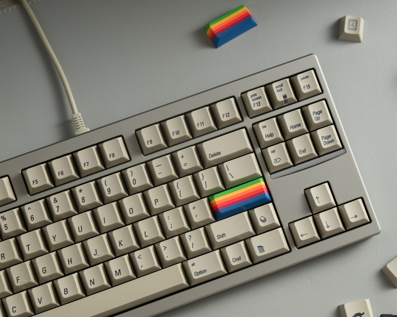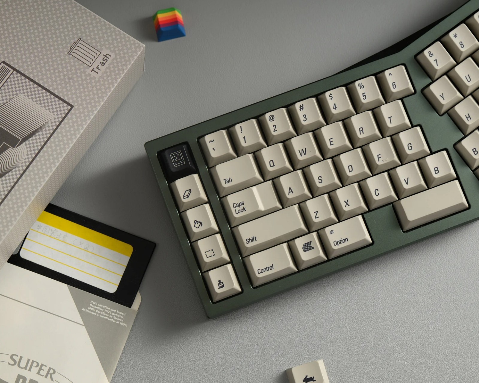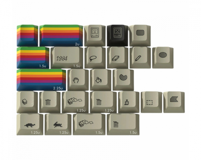 PBTfans 1984 ist ein Novitäten-Kit von Keycaps von PBTfans und bietet ein einzigartiges Klangerlebnis. Hergestellt aus PBT-Material mit Einschlüssen von Glas-Mikrofasern, verleihen diese Keycaps eine klare und knackige Klangqualität. Das Produkt hat ein Cherry-Profil und ist so gestaltet, dass es mit Cherry MX-Schaltern und MX-Stil Klonen kompatibel ist.Die Keycaps haben eine Dicke von etwa 1,3 mm, was zur Haltbarkeit beiträgt und ein unverwechselbares Gefühl vermittelt. Die äußere Textur der Keycaps ist so gestaltet, dass sie das Gefühl von Haut nachahmt, was sich von Produkten mit einer Doppel-Farb-Oberfläche unterscheidet. Der Herstellungsprozess umfasst Dye-Sublimierung, was die Abriebfestigkeit verbessert und dafür sorgt, dass das Design im Laufe der Zeit intakt bleibt. Die Keycaps werden in einem ABS-Keycaps-Tablett geliefert, das mit einem speziell entworfenen Tablett geschützt ist. Es ist auch erwähnenswert, dass nur die Keycaps im Paket enthalten sind, keine Tastatur liegt bei.