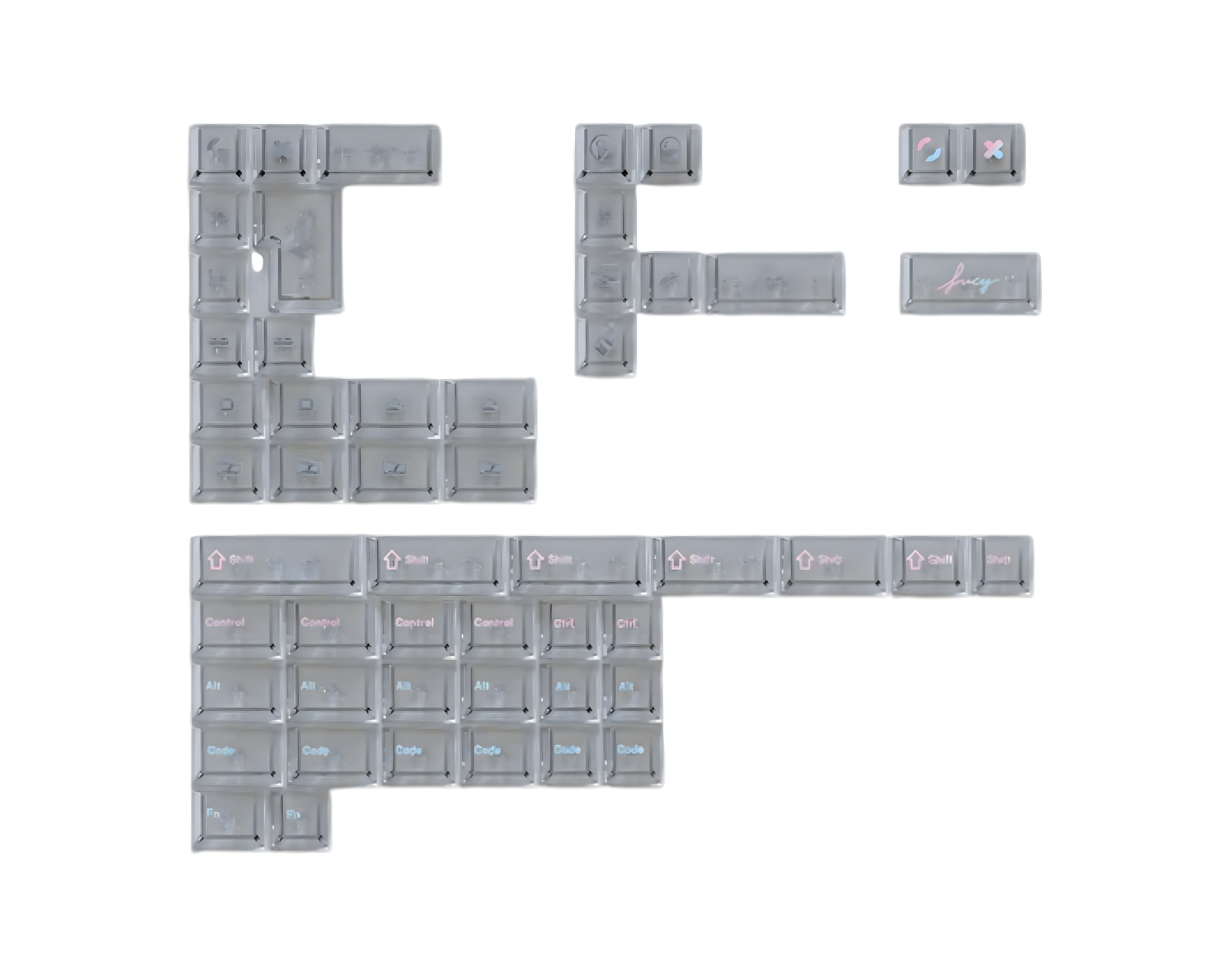PBTfans Lucy R2 ist ein Tastatursatz mit Schwerpunkt auf dem Thema aus Cyberpunk: Edgerunner. Dieses Set bietet einzigartige Designoptionen, inspiriert von der Protagonistin Lucy, und ist in zwei Teile unterteilt: „Hacker“ und „Luna“. Das Set ist speziell für Gamer und Enthusiasten konzipiert, die Stil und Leistung für ihre Tastatursysteme suchen. Das Material besteht aus PBT mit ABS für die Neuheiten, was Haltbarkeit und langfristige Nutzung bietet.Das Material des Sets besteht aus hochwertigem PBT, das für seine Widerstandsfähigkeit gegen abgenutzte Zeichen und Verformung bekannt ist. Das Profil ist Cherry, was ein angenehmes Gefühl bei der Verwendung vermittelt. Der Herstellungsprozess verwendet die Dye-Sub-Technik, was bedeutet, dass das Design im Material eingeschlossen und nicht auf der Oberfläche gedruckt ist, was die Lebensdauer des Drucks erhöht. Das Set ist kompatibel mit Cherry MX-Schaltern und MX-kompatiblen Klonen. Die Lieferung erfolgt in einem Tray aus ABS-Material mit einer speziell gestalteten Tray-Abdeckung.
