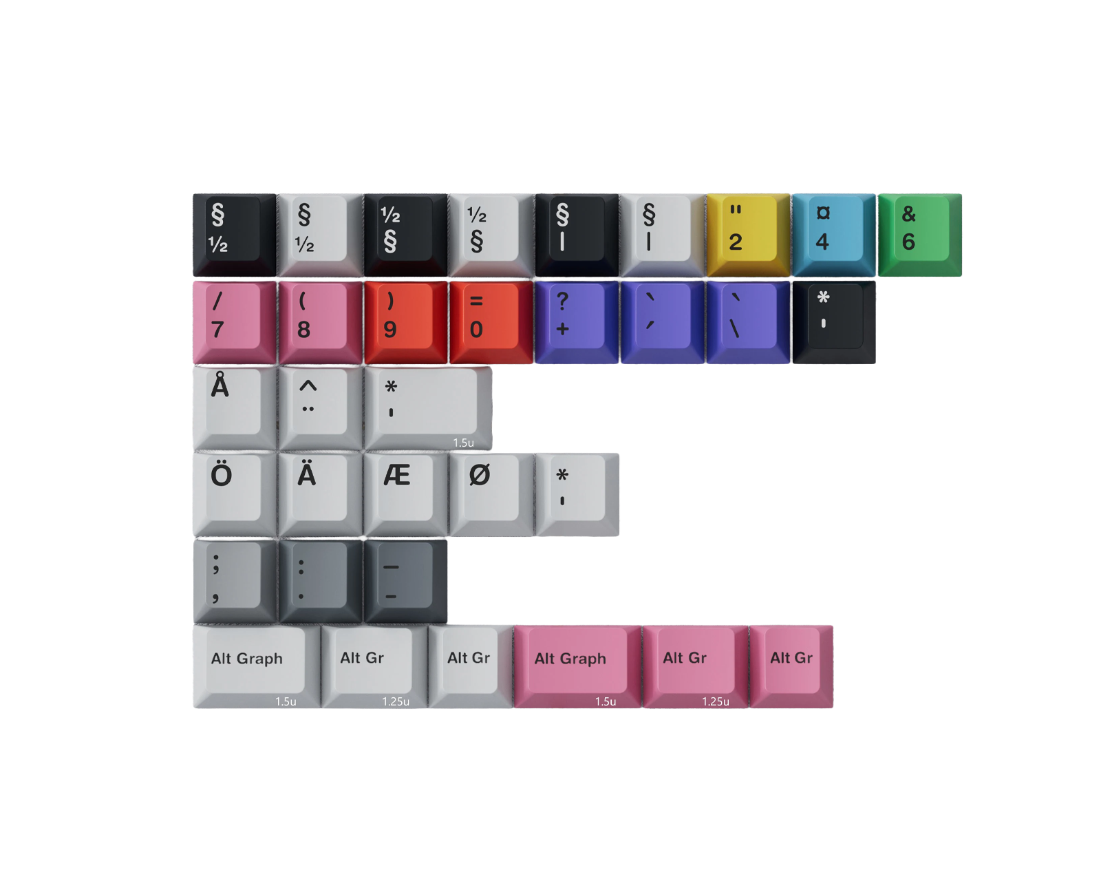 PBTfans No Signal ist ein Set von Keycaps, das von elektronisch generierten Testmustern inspiriert wurde, die früher zur Kalibrierung von Fernsehern verwendet wurden. Das Set enthält gestaltete grafische Elemente, die auf verschiedene Testmuster verweisen, wie das Indian-Head-Testmuster und SMPTE-Farben, wodurch die Tastatur zu einem Kalibrierungswerkzeug wird. Diese Testkarten wurden ursprünglich verwendet, um anzuzeigen, dass Fernsehsender ihre Programme noch nicht begonnen hatten. Es ist ein Teil der Popkultur geworden und taucht in modernen Produktionen auf.Die Keycaps bestehen aus PBT-Material und haben ein Cherry-Profil, das ein komfortables Benutzererlebnis bietet. Die Produktionsmethode umfasst Dye-Sub und Reverse Dye-Sub, was Haltbarkeit und Farbintensität gewährleistet. Das Set ist kompatibel mit Cherry MX-Schaltern und MX-Stil-Klonen. Es kommt in einem ABS-Keycaps-Behälter mit einem gestalteten Tray-Cover, was die Verpackung praktisch für die Aufbewahrung und den Transport macht. Bitte beachten Sie, dass nur die Keycaps enthalten sind, keine Tastatur.
