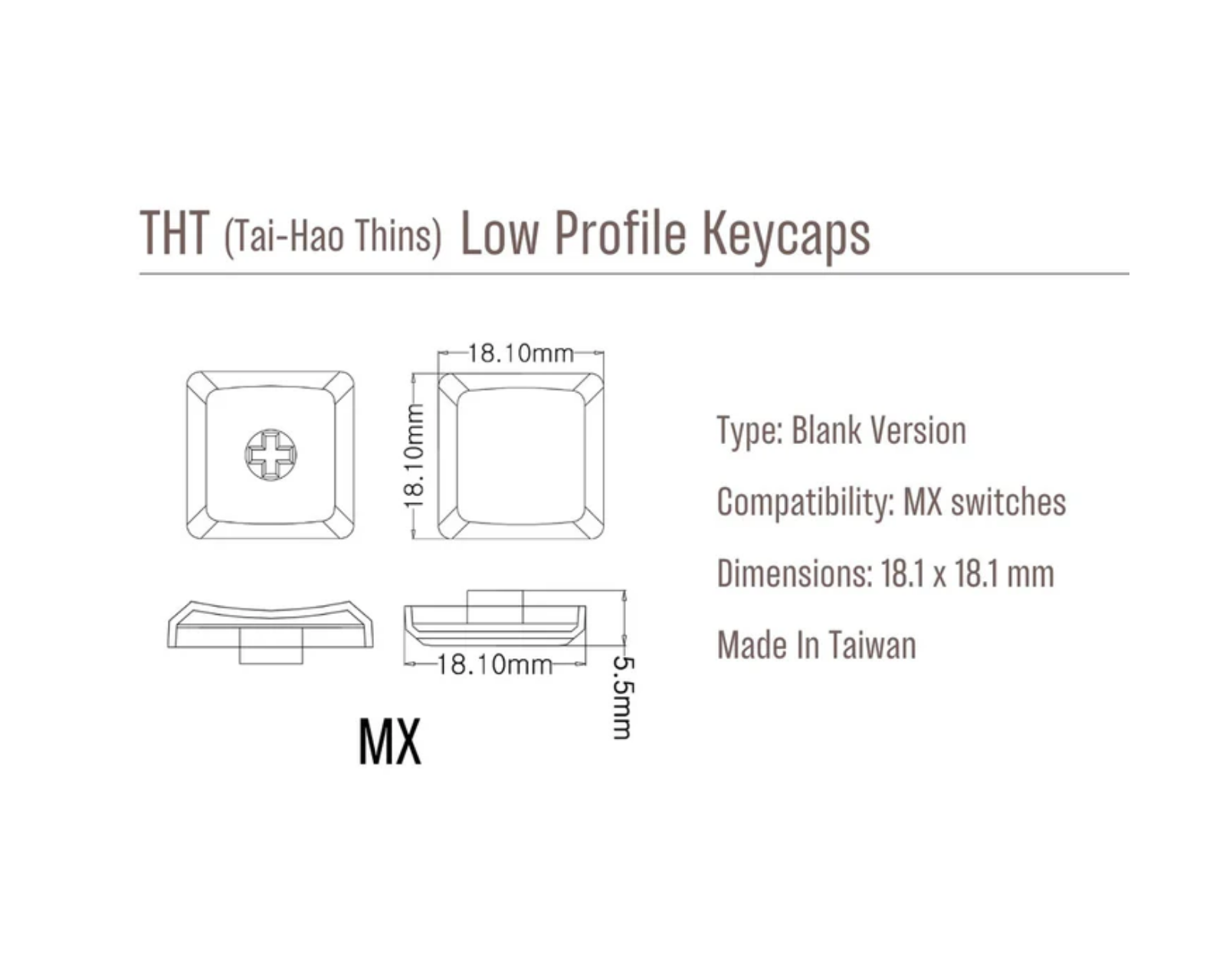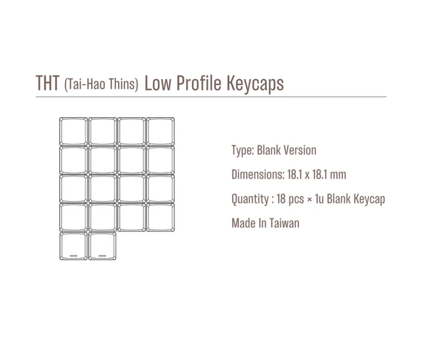 Low-Profile-Keycaps sind ein Set mit 18 Stück glänzenden Keycaps von Tai-Hao, hergestellt aus PBT-Material. Das Set enthält 16 Keycaps sowie 2 Bonus-Tasten und ist für die Verwendung mit Choc V1-Schaltern konzipiert. Die Keycaps haben ein THCS-Profil und die Maße sind 16,5 × 17,5 mm. Das spezielle PBT-Material bietet hohe Haltbarkeit und Abnutzungsbeständigkeit, was besonders für Gamer wichtig ist, die langanhaltende Leistung suchen.Das niedrige Profil trägt zu einem ergonomischen Schreiberlebnis bei, während die leisen Tasteneingaben das Geräuschniveau minimieren. Das minimalistische Design ohne Beschriftungen bietet eine schlichte Ästhetik, die zu verschiedenen Setup-Konfigurationen passt.