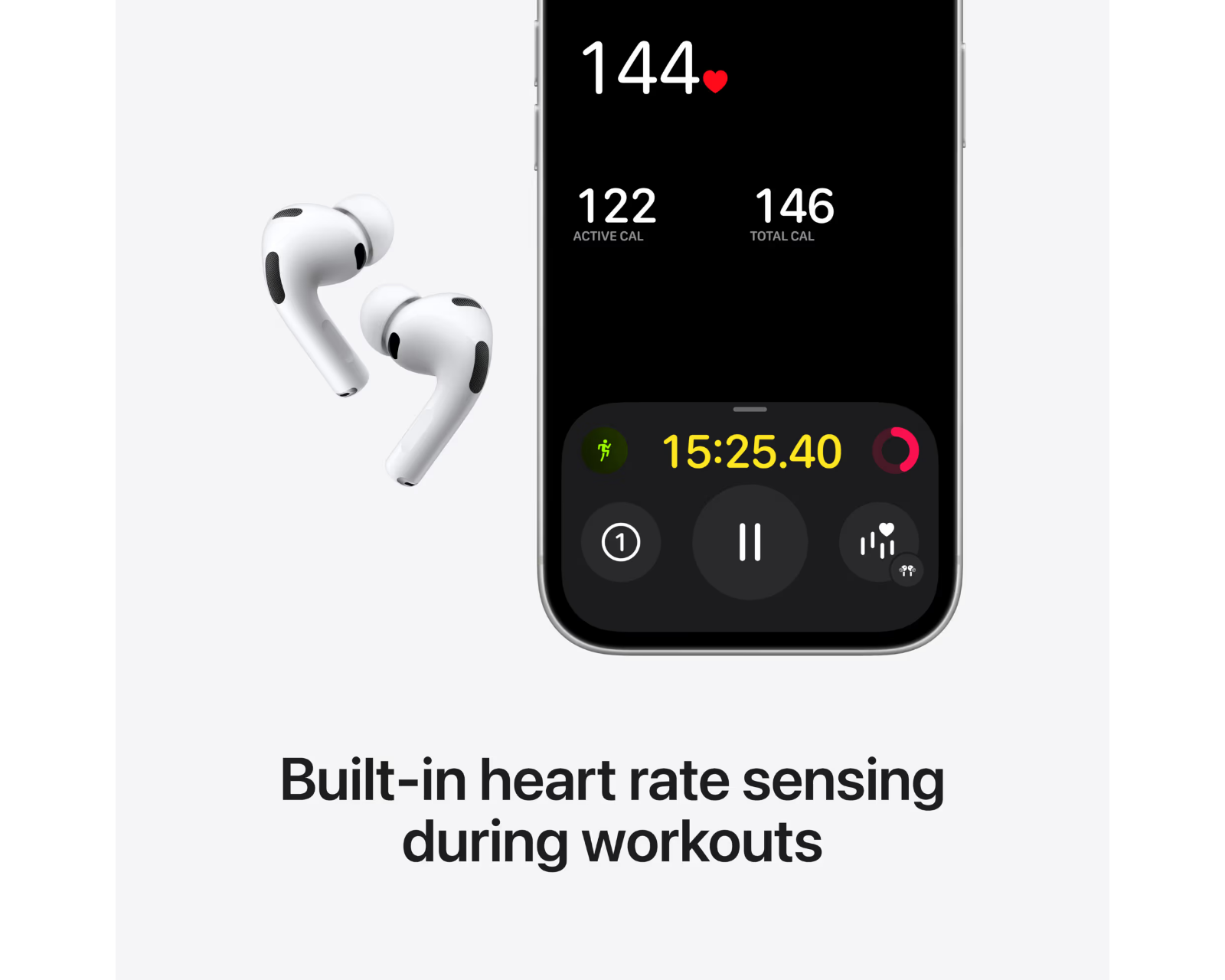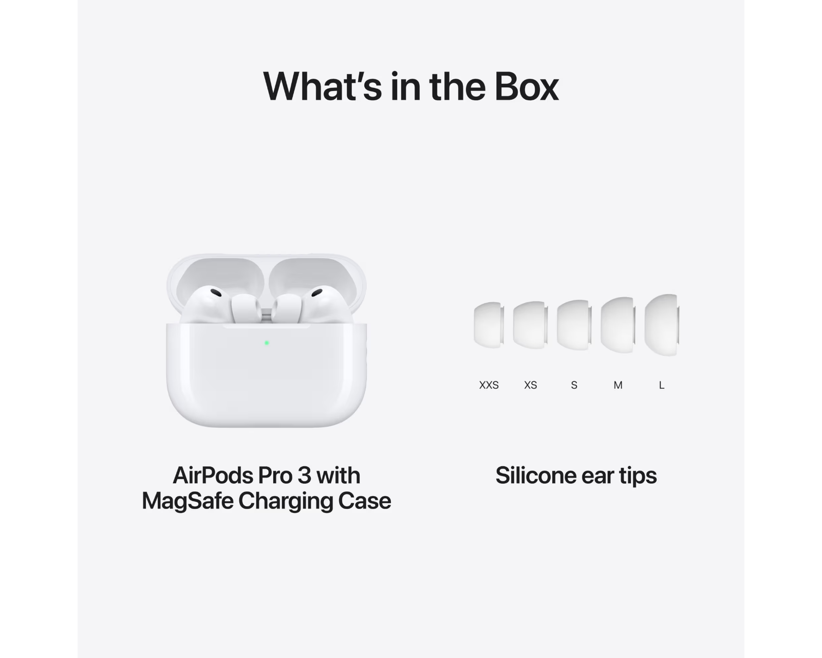 AirPods Pro 3 sind kabellose In-Ear-Kopfhörer von Apple, die aktive Geräuschunterdrückung, Herzfrequenzmessung und verbesserte Klangqualität bieten. Sie ermöglichen es den Nutzern, bis zu 24 Stunden Akkulaufzeit mit dem mitgelieferten MagSafe-Case zu genießen. Diese komplett kabellosen Kopfhörer richten sich hauptsächlich an Nutzer, die ein hochwertiges Klangerlebnis und einen funktionalen Trainingsbegleiter suchen.Das Produkt hat ein neues Design mit Ohrstöpseln in fünf Größen, um eine sichere und bequeme Passform zu gewährleisten. Die aktive Geräuschunterdrückung ist doppelt so effektiv wie bei vorherigen Modellen und verbessert das Hörerlebnis, indem sie unerwünschte Geräusche minimiert. Ein integrierter Herzfrequenzmesser ermöglicht es den Nutzern, während des Trainings auf ihre Gesundheit zu achten. Das Gerät verfügt auch über AdaptiveEQ, das den Klang in Echtzeit basierend auf dem einzigartigen Hörvermögen des Nutzers anpasst.