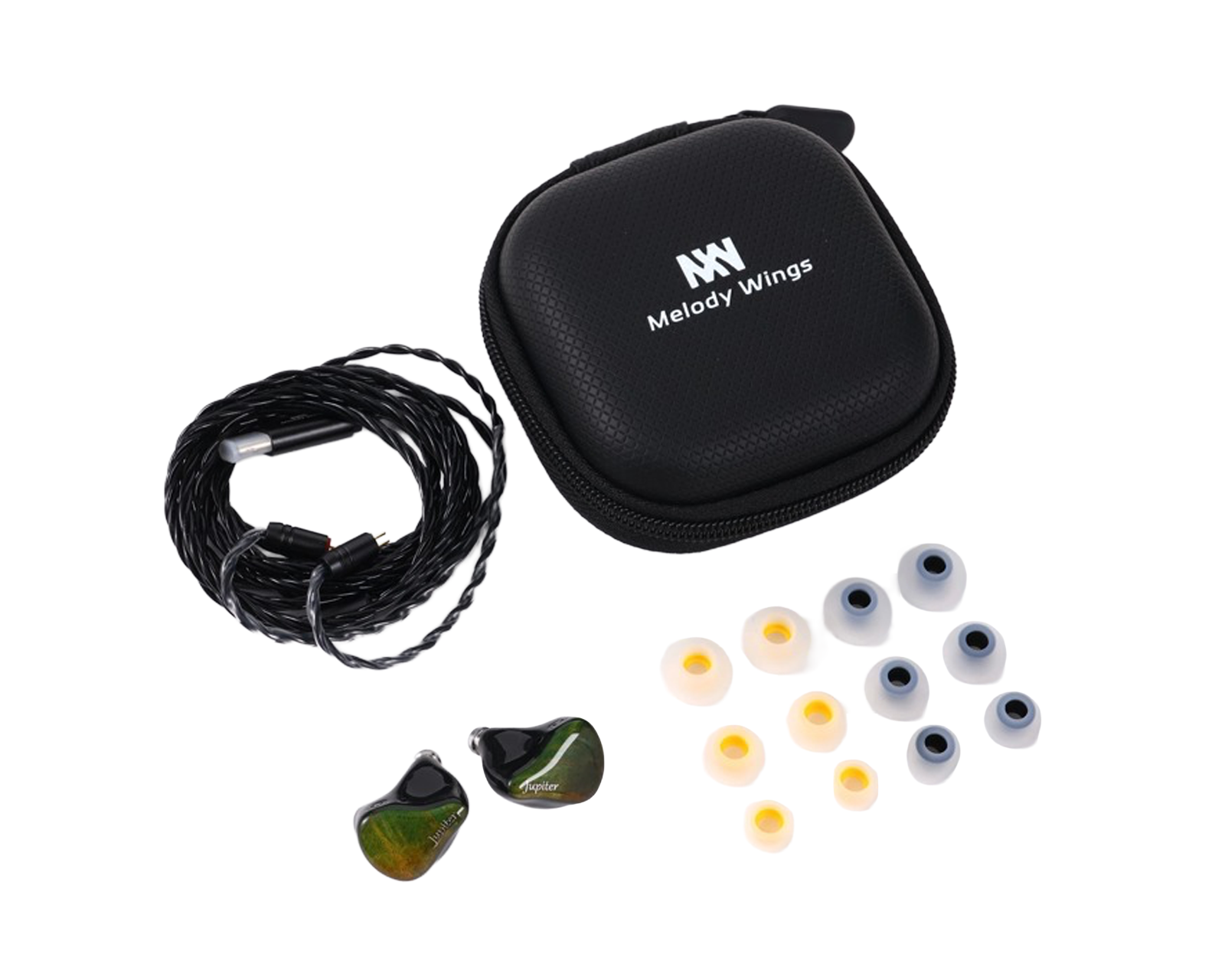 Jupiter 1DD IEM sind In-Ear-Kopfhörer von Melody Wings, die hohe Klangqualität bieten. Dieses Modell hat eine Impedanz von 32 Ohm und eine Empfindlichkeit von 102 dB. Mit einem 1,4 m langen silberbeschichteten Kabel und einem USB-C-Anschluss ist es für die Verwendung mit modernen Geräten konzipiert.Die Kopfhörer sind mit einer Kombination aus schwarzem Harz und einer Holzfront gebaut, was nicht nur einen ästhetischen Touch verleiht, sondern auch zur Klangleistung beiträgt. Die sorgfältig gestaltete Konstruktion sorgt für eine gute Schallisolierung und Komfort für den Benutzer. Das Harz-Gehäuse bietet Langlebigkeit, während das Holz eine naturgetreuere Klangcharakteristik liefert. Diese Kopfhörer sind sowohl für Gaming als auch für das Musikhören konzipiert, was sie vielseitig für verschiedene Anwendungssituationen macht.