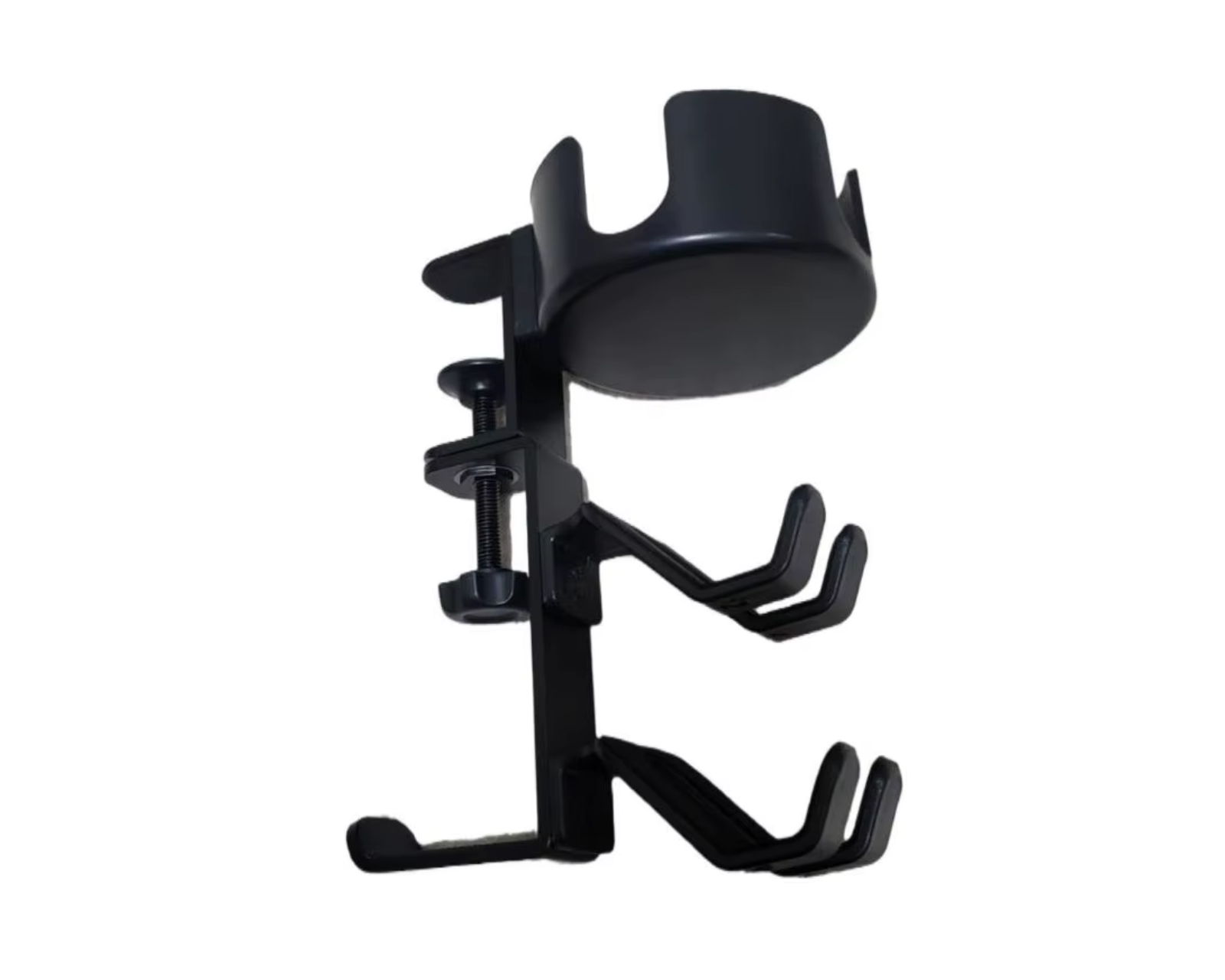 Halter für Getränke, Kopfhörer und Controller ist ein multifunktionales Gerät von MaxMount, das Becherhalter, Headset- und Spielcontrollerhalter in einem 3-in-1-Design kombiniert. Es wurde entwickelt, um Zubehör wie Kopfhörer, Spielcontroller, Tassen und Mobiltelefone effektiv zu organisieren, was zu einem strukturierten Arbeitsplatz für den Benutzer führt.Der Halter besteht aus einer Mischung aus hochwertiger Aluminiumlegierung und Kunststoff, was eine robuste und langlebige Konstruktion gewährleistet. Mit einer maximalen Tragfähigkeit von 9 kg kann er mehrere Geräte ohne Risiko von Beschädigungen aufnehmen. Die Klemme ist verstellbar, was die Montage an Schreibtischen mit einer Dicke von bis zu 4 cm ermöglicht. Um die Oberfläche des Schreibtisches vor Beschädigungen zu schützen, hat die Klemme an ihren Enden weiche Gummipads. Sie ist auch rost- und korrosionsbeständig, was eine lange Lebensdauer bei täglicher Nutzung garantiert.