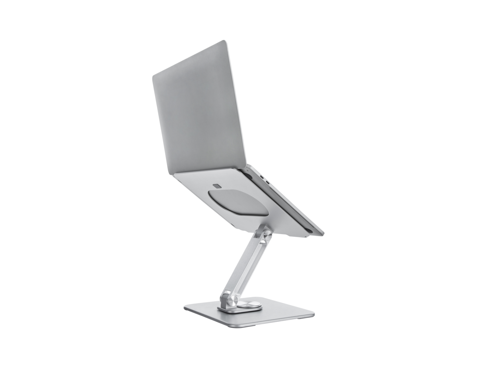 360° Rotationsbar Fällbar Laptopständer ist ein Computerzubehör von MaxMount, das ein einzigartiges Design für flexible Nutzung bietet. Dieser Ständer kann um 360 Grad gedreht werden, was das Teilen des Bildschirms während Meetings oder das Wechseln zwischen Aufgaben erleichtert. Er ist kompatibel mit Laptops und Tablets in Größen von 11 bis 17 Zoll. Das ergonomische Design ermöglicht es, den Winkel anzupassen, um die optimale Betrachtungshöhe zu erreichen und somit den Benutzerkomfort zu verbessern. Die faltbare Konstruktion erleichtert den Transport und die Aufbewahrung.Das Material des Ständers ist so gestaltet, dass eine gute Belüftung sichergestellt wird, was die Luftzirkulation verbessert und als wärmeableitender Mechanismus fungiert. Antirutschpolster sind vorhanden, um Schäden an Oberflächen zu verhindern, und eine Sicherheitskante schützt die Geräte davor, abzurutschen. Seine verstellbaren Winkel geben den Benutzern die Möglichkeit, die bequemste Position für längere Sitzungen zu finden. Der Ständer ist vollständig zusammenklappbar, was ihn leicht zu transportieren macht.