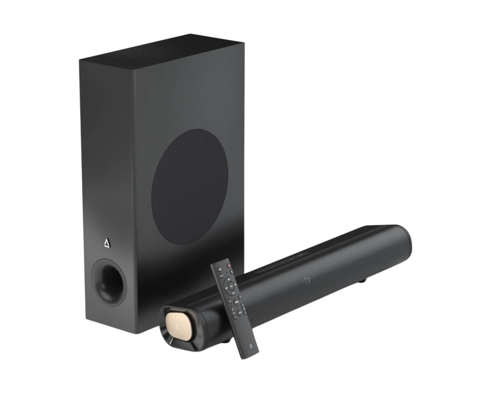 Stage Pro ist eine Soundbar mit Subwoofer von Creative, die Dolby Audio-Funktionen bietet. Sie liefert einen Stereo-Sound im 2.1-Format mit einer Gesamtleistung von 80W, die bis zu 160W Peak erreichen kann. Das Produkt ist für die Verwendung mit Fernsehern und Computern vorgesehen und ermöglicht ein verbessertes Hörerlebnis für Filme, Musik und Spiele. Die Verbindung erfolgt einfach über HDMI ARC, USB oder Bluetooth.Das Gerät hat einen Frequenzbereich von 30 bis 20.000 Hz und ist mit Bluetooth Standard 5.3 für kabellose Verbindungen ausgestattet. Die Tonqualität und die Verarbeitungsqualität wurden priorisiert, und das Gerät wird mit einer Fernbedienung für eine einfache Nutzung geliefert. Die Soundbar hat die Abmessungen 550 x 112,1 x 80,7 mm und der Subwoofer misst 115 x 265 x 420 mm, wodurch er kompakt genug ist, um in verschiedenen Umgebungen zu passen. Das Gewicht der Soundbar beträgt 1,33 kg, während der Subwoofer 3,4 kg wiegt. Ein USB-C zu USB-A-Kabel und ein Netzteil sind im Lieferumfang enthalten.