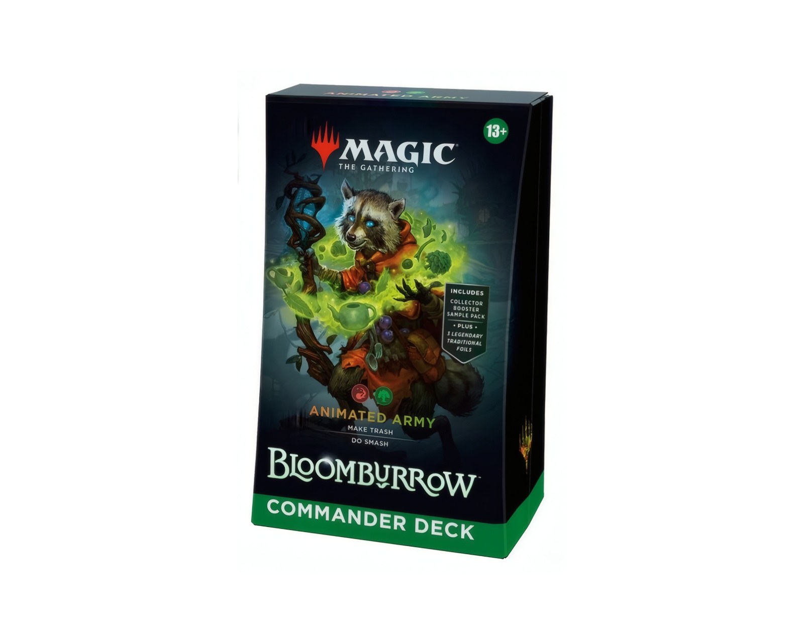 Bloomburrow Commander Deck ist ein fertiges Kartenspiel aus Magic: The Gathering, das 100 magische Karten enthält, die für strategisches Spiel mit bis zu vier Spielern entwickelt wurden. Es kommt mit einer Mischung aus Karten, darunter eine borderless foil Vorderseite, eine borderless Imagine: Courageous Critters Foilkarte und 98 Non-Foil-Karten, was es sowohl für Anfänger als auch für erfahrene Spieler leicht zugänglich macht. Mit diesem Deck können die Spieler an einem Kampf teilnehmen, bei dem kleinere Kreaturen wie Mäuse, Frösche und Fledermäuse im Mittelpunkt stehen, was das Spiel zu einem einzigartigen Erlebnis von Stärke und Strategie macht.Die Bauqualität des Decks ist hoch mit klar gedruckten Karten und einem robusten Spielformat, und es enthält neue Karten, die das Spielerlebnis mit 15 neuen magischen Karten bereichern. Neben den Karten umfasst es ein Kartensammelpaket, Tokens und einen Lebensrechner, der das Spiel erleichtert. Die Deckbox bietet Platz für bis zu 100 Karten und ist praktisch für Aufbewahrung und Transport.