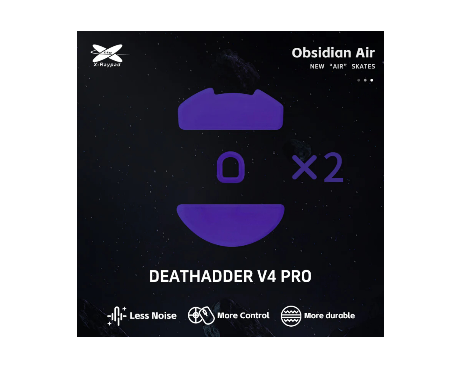 Obsidian Air von X-raypad ist ein Set von Mauskufen für Razer Deathadder V4 PRO, das die Kontrolle verbessert und die Lautstärke während der Benutzung reduziert. Entwickelt, um die Reibung für Stoff- und Glasmausmatten zu erhöhen. Das veredelte PTFE-Material sorgt für eine deutliche Verbesserung der Bremsfähigkeit, was eine bessere Kontrolle und schnelles Stoppen in kritischen Situationen ermöglicht.Die sorgfältig gestaltete Oberflächenstruktur bietet eine optimale Balance zwischen Gleiteleigenschaften und Kontrolle, was sie besonders nützlich für Gamer macht, die hohe Präzision verlangen. Die Kufen sind sowohl für langanhaltende Nutzung als auch für intensive Spielsitzungen geeignet. Jedes Paket enthält zwei Sets von Kufen.