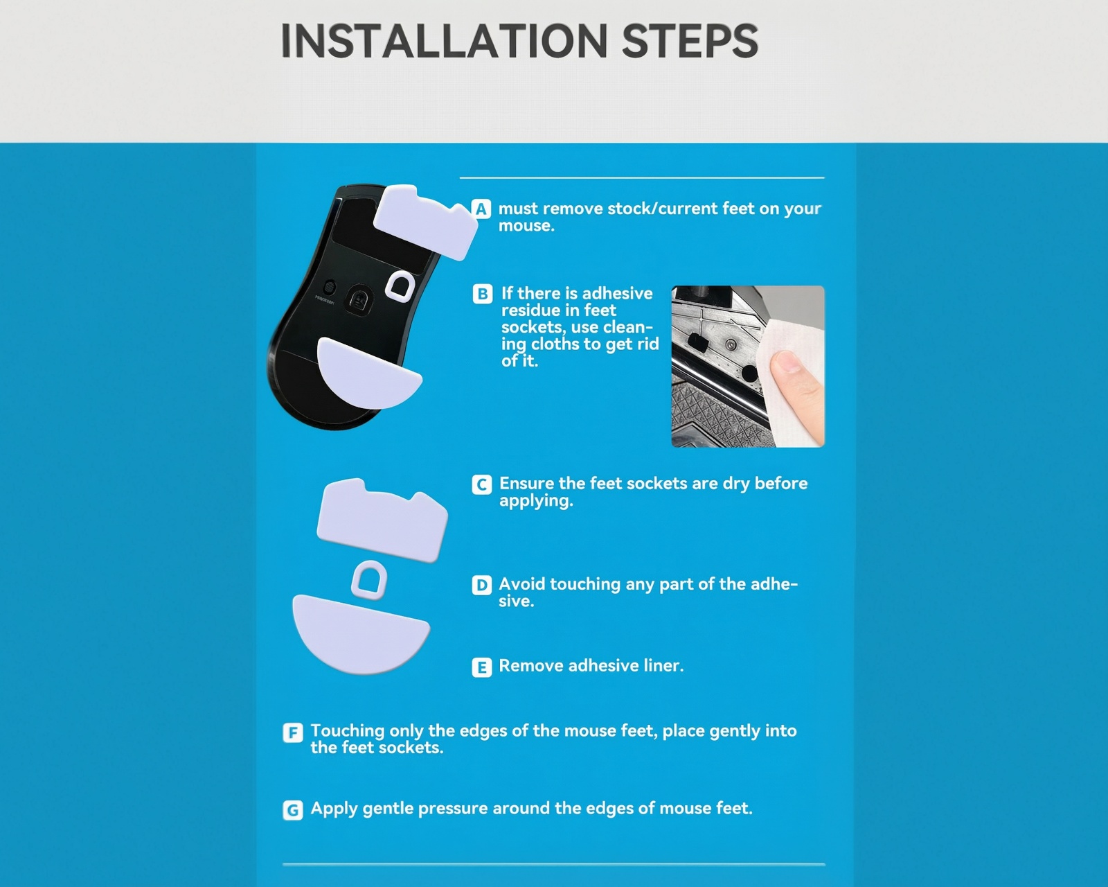 Mouse Skates von TalonGames bieten eine hochwertige Lösung für erhöhte Präzision und Kontrolle während der Nutzung. Diese Mauspads sind aus speziellem Teflon-Material mit einer sorgfältig kalibrierten Dicke gefertigt, was ein gleichmäßiges und konstantes Gleiten ermöglicht. Durch den Austausch der Originalfüße Ihrer Maus können Sie Ihre Spielleistung erheblich verbessern.Das Produkt besteht aus 100% jungfräulichem PTFE-Material, das die Reibung minimiert und umweltfreundlich ist. Die abgerundeten Kanten jedes Fußes ermöglichen ein langlebiges Gleiten sowie eine einfache Installation mit 3M-Kleber, um Rückstände zu vermeiden. Die gut abgestimmte Dicke wurde so gestaltet, dass sie die Haltbarkeit und Genauigkeit des Sensors der Maus berücksichtigt, was für Spieler mit unterschiedlichen Spielstilen wichtig ist. Diese Füße verbessern auch das Spielerlebnis, indem sie die Griffspannung und Belastung des Handgelenks während langer Sitzungen verringern.