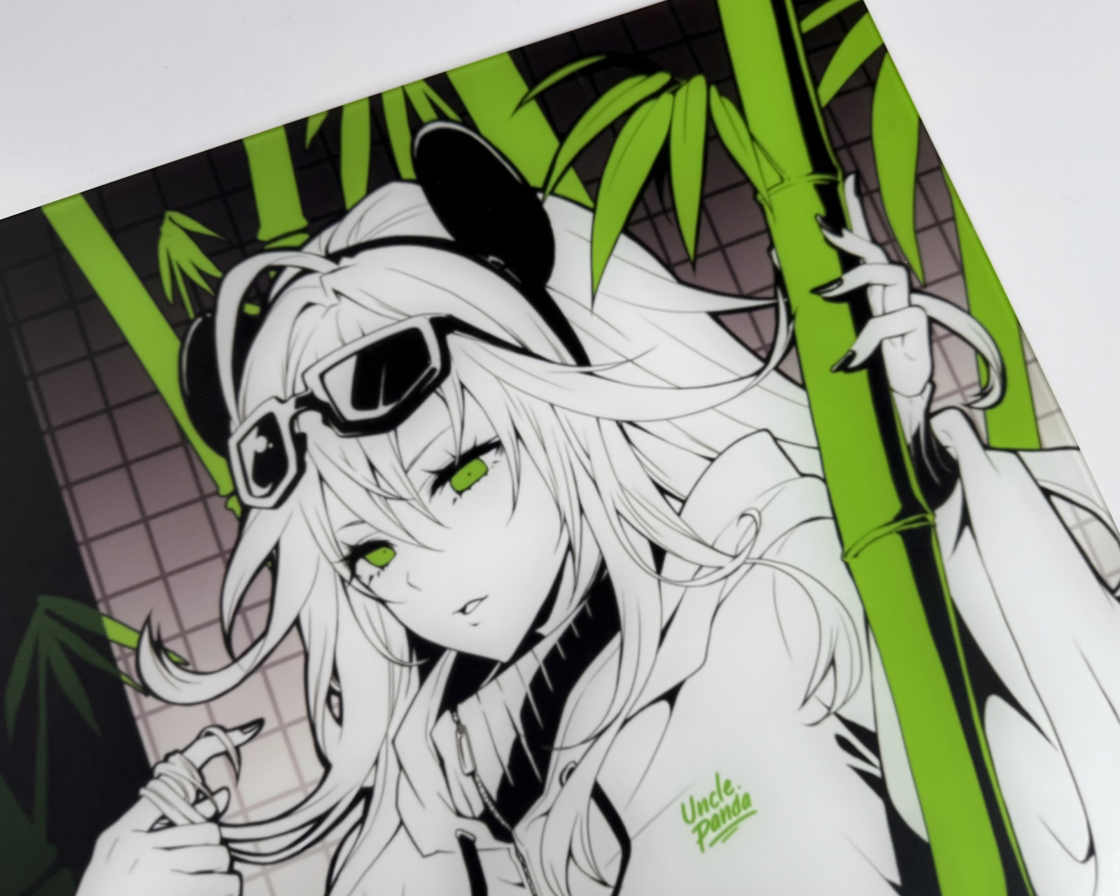 Uncle Panda BUQIU Glas Mauspad ist ein Mauspad, das für Gamer und Enthusiasten entwickelt wurde, die hohe Anforderungen an Stabilität und Gefühl stellen. Dieses Modell bietet ein flaches Profil und eine strukturierte Oberfläche aus mikrogekrümmtem Glas, die hohe Reibung und Kontrolle gewährleistet. Mit den Maßen 490mm x 420mm x 3,5mm, einschließlich der Basis, ist dieses Mauspad so gestaltet, dass es perfekt auf Ihrer Spielstation passt und zu einem fokussierten Gaming-Erlebnis beiträgt.Das Mauspad ist mit einer wunderbaren, naturinspirierten Grafik von @midukishion gestaltet, die ein Mädchen mit Pandabärentattoo vor einem lebhaften grünen Hintergrund zeigt. Die abgeschrägten Kanten und die silikonbasierte Konstruktion sorgen dafür, dass das Mauspad stabil auf der Oberfläche liegt, während die hohe dynamische und statische Reibung sowohl Präzision als auch Kontrolle beim schnellen Spielen bietet. Mit einem Design, das sowohl funktional als auch ästhetisch ansprechend ist, kombiniert das BUQIU Glas Mauspad hohe Leistung mit schöner Gestaltung.