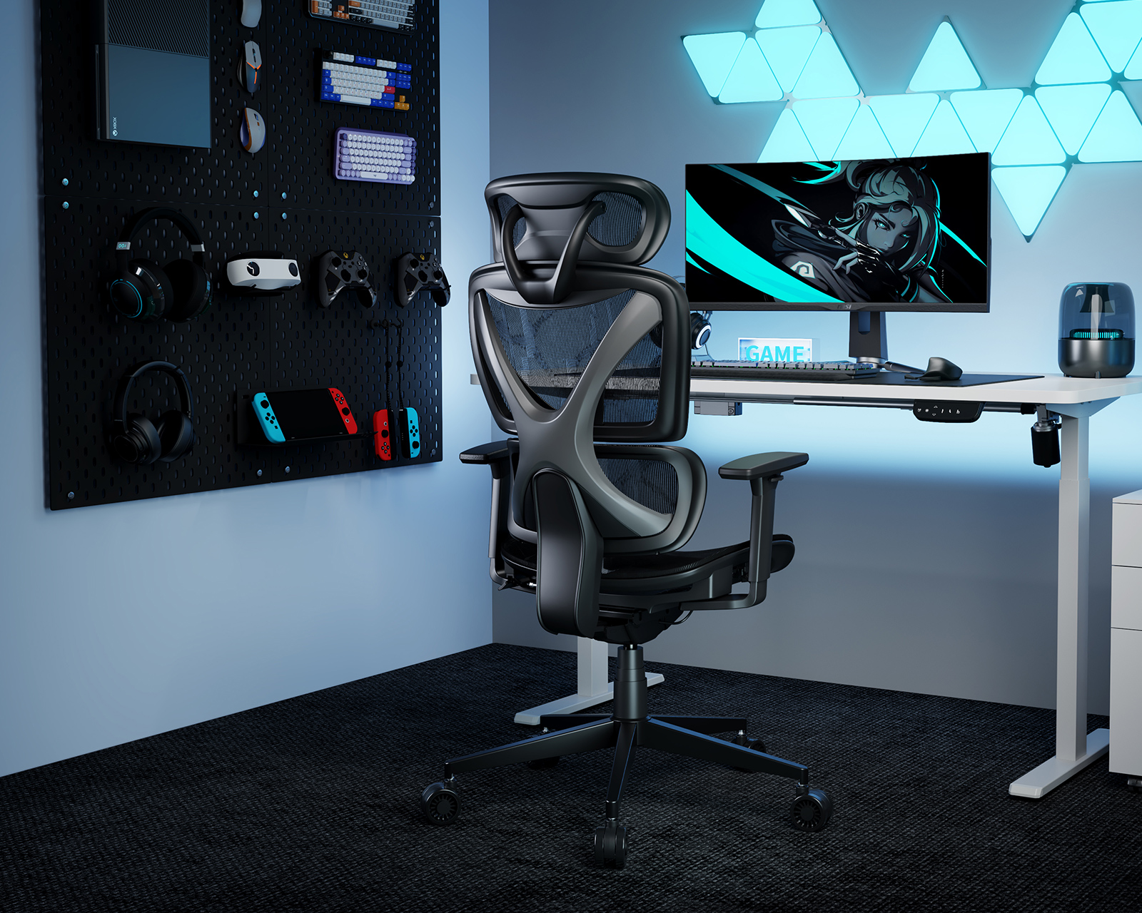 SpineX Pro ist ein Gamingstuhl von MaxMount, der fortschrittliche Ergonomie und Funktionalität kombiniert. Der Stuhl hat eine maximale Belastung von 130 kg und eine gewichtsbalancierte Neigemechanik für ein anpassbares Sitzerlebnis. Dies macht ihn sowohl für Gaming als auch für Büroarbeit geeignet.Der Stuhl ist mit einem luftigen Mesh-Material bezogen, das eine flexible und komfortable Oberfläche bietet. Die verstellbare Nackenstütze ist aus PU mit diskreter Stickerei gefertigt, was sowohl Höhen- als auch Drehverstellungen ermöglicht, um die Körperhaltung zu verbessern. Die Armlehnen verfügen über eine 3D-Funktionalität mit weicher PU-gepolsterter Oberfläche und Anpassungen für Höhe, Tiefe und Drehung. Das zentrale Element ist die gewichtsbalancierte Kabelsteuermechanik, die die Bewegungen von Stuhl und Rückenlehne synchronisiert. Die Anpassungen erfolgen einfach mit Kabelhebeln, die am Rand des Stuhls platziert sind. Der Stuhl bietet zudem einen gleitenden Sitz, um die Sitztiefe anzupassen und verschiedenen Benutzern gerecht zu werden.