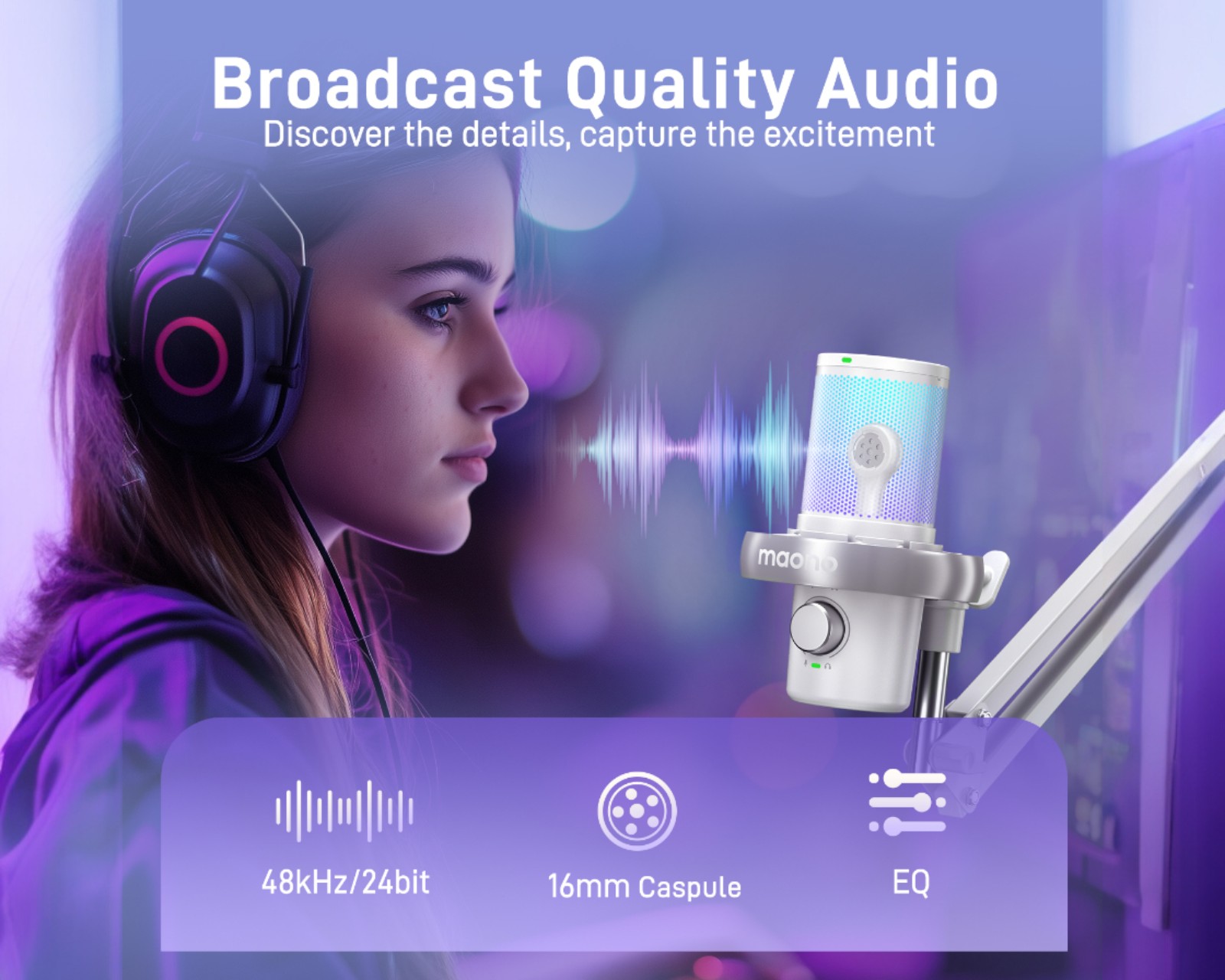 Maono ist eine innovative Audiomarke, die sich auf Mikrofone, Kopfhörer und Audiolösungen für Content-Ersteller, Streamer und Podcaster spezialisiert hat. Mit moderner Technologie, stilvollem Design und benutzerfreundlicher Funktionalität macht Maono professionellen Sound für alle zugänglich.