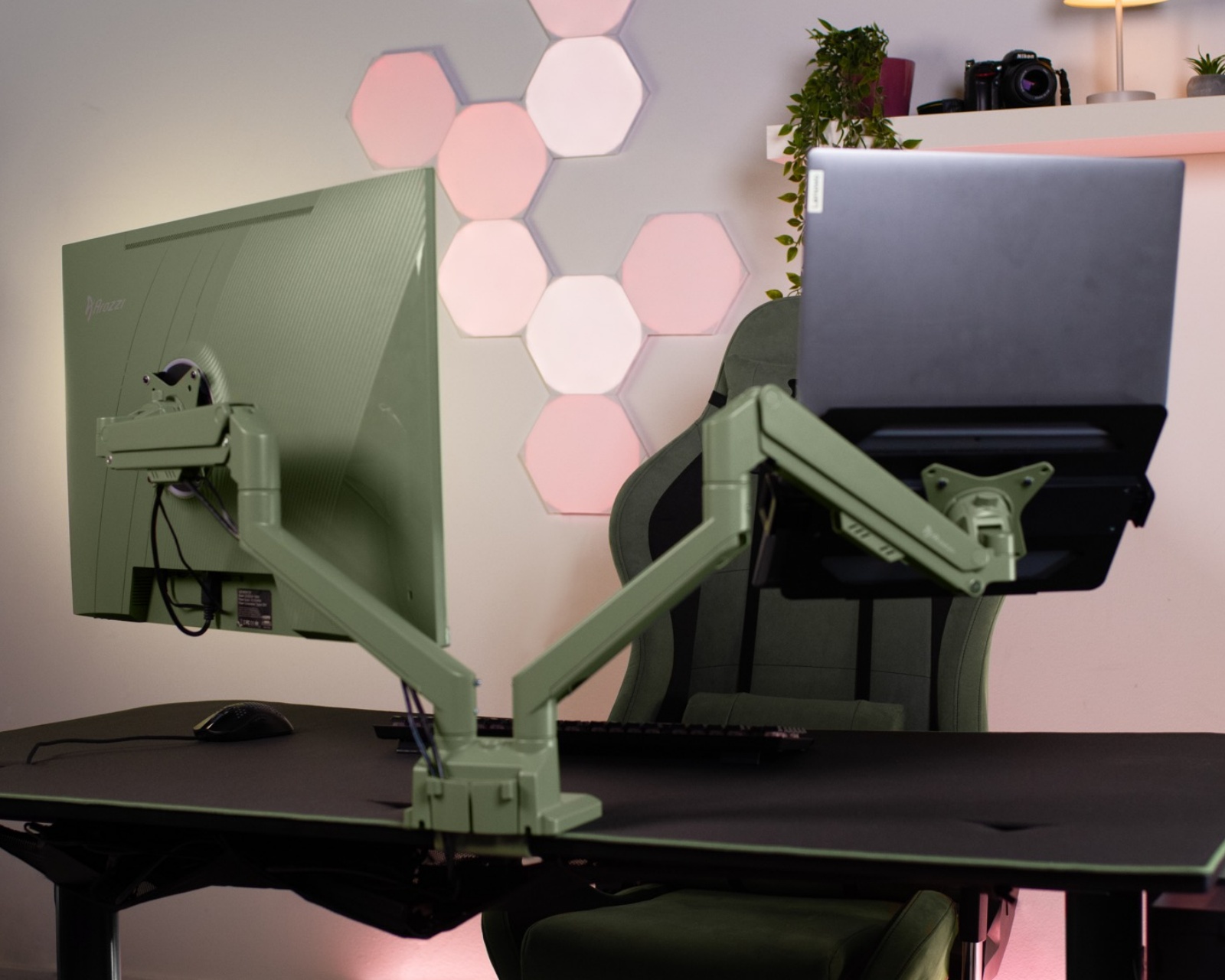 Alzare Neo Duo Monitorständer ist eine Produktkategorie für Computerzubehör von Arozzi, die eine stabile Lösung zum Montieren von bis zu zwei Monitoren bietet. Dieser Monitorständer unterstützt ein maximales Gewicht von 9 kg pro Monitor und ist mit VESA-Halterungen von 100x100 mm und 75x75 mm ausgestattet. Die grüne Farbe verleiht ihm ein markantes Aussehen, das in viele Büro- und Spielumgebungen passt. Dank seines Designs ist der Ständer sowohl für Gamer als auch für Büroanwender geeignet, die ihren Arbeitsplatz optimieren möchten.Aus Stahl gefertigt bietet Alzare Neo Duo eine hohe Haltbarkeit und Stabilität. Die Ständer können für eine Neigung von +45° bis -45° eingestellt werden und lassen sich in zwei Richtungen mit einem Schwenkbereich von +90° bis -90° drehen. Eine Rotation von 360° ermöglicht zusätzliche Flexibilität bei der Anpassung der Monitore. Die Klemme macht die Installation einfach und ermöglicht eine mühelose Befestigung an einem Schreibtisch. Mit integrierter Kabelverwaltung können Benutzer Kabel organisieren, um Kabelsalat zu reduzieren und die Arbeitsfläche frei von Unordnung zu halten.