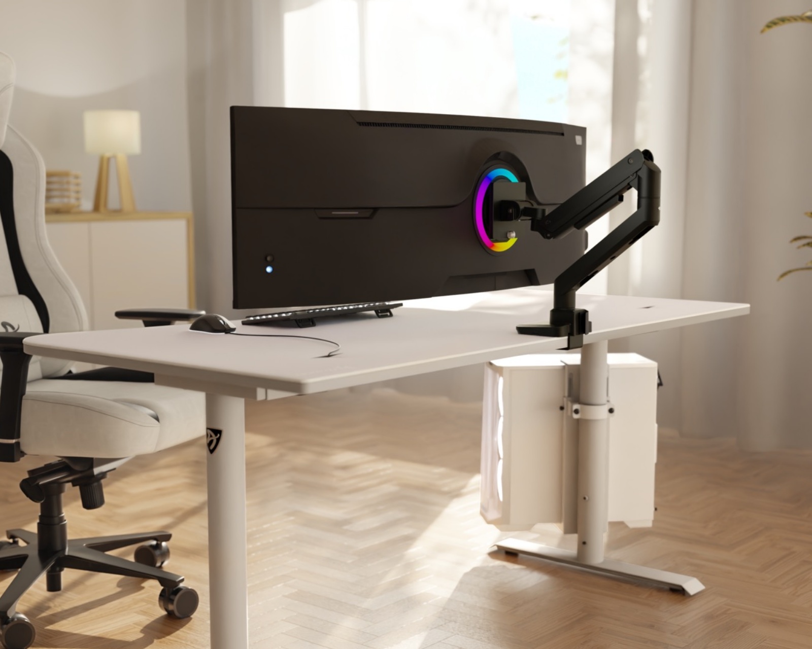 Alzare Neo PRO Monitorständer ist ein Monitorständer von Arozzi, der Stabilität und Flexibilität für Gamer und professionelle Anwender bietet. Er kann ein maximales Gewicht von 20 kg pro Monitor tragen und ist sowohl mit 75x75 als auch mit 100x100 VESA-Halterungen ausgestattet. Die schwarze Farbe verleiht einen eleganten und modernen Look, der in die meisten Arbeitsumgebungen passt.Der Monitorständer ist aus Stahl gefertigt und hat eine robuste Konstruktion, die lange Haltbarkeit garantiert. Die Montage erfolgt über eine Klemme, was die Installation einfach und unkompliziert macht. Der Ständer hat eine Neigung von +50° bis -20° und einen Schwenkbereich von +90° bis -90°, was eine Anpassung der Monitorposition an individuelle Bedürfnisse ermöglicht. Eine Drehung um 360° bietet zusätzliche Flexibilität bei der Anpassung des Monitors. Kabelmanagement ist enthalten, um eine gut organisierte Arbeitsfläche zu gewährleisten.