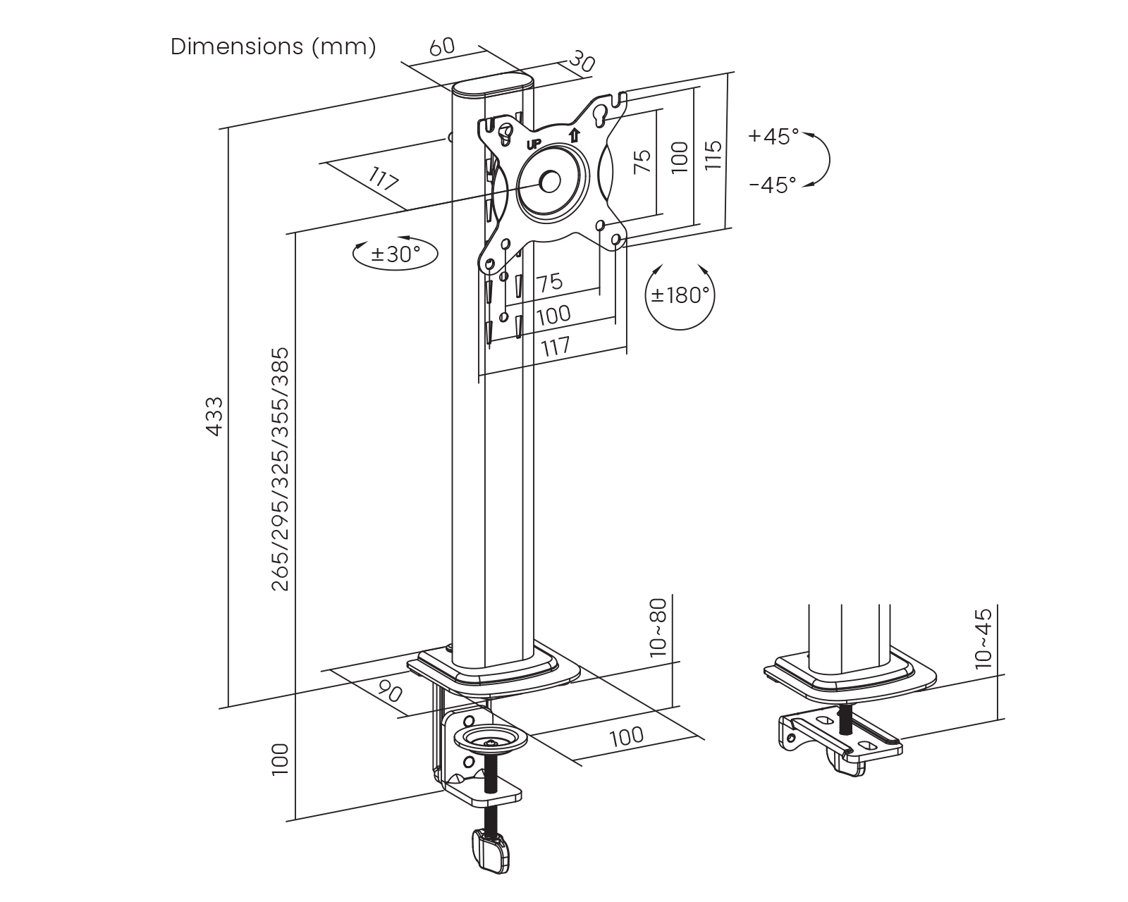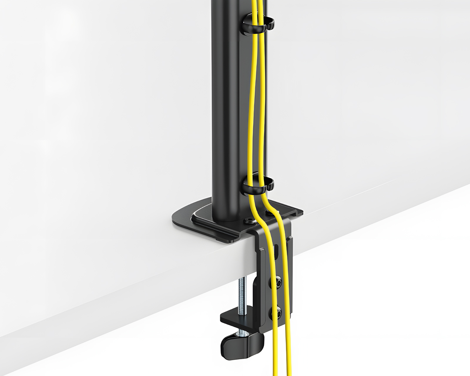 Skärmstativ von MaxMount, das für die Unterstützung von Bildschirmen zwischen 17 und 34 Zoll konzipiert ist. Dieses Stativ bietet ergonomische Höhenverstellung und ist darauf ausgelegt, Ihren visuellen Komfort zu maximieren. Mit einem Maximalgewicht von 12 kg pro Bildschirm und einer robusten Konstruktion kann es problemlos Ihre Anforderungen erfüllen, egal ob Sie Gamer sind oder mit mehreren Bildschirmen arbeiten.Das Bildschirmstativen ist aus strapazierfähigen Materialien wie Kunststoff und Stahl gefertigt, was Langlebigkeit und Stabilität gewährleistet. Die werkzeugfreie Neigung von +45° bis -45° ermöglicht es Ihnen, den Bildschirm schnell und einfach einzustellen, während die 360° drehbare VESA-Platte Ihnen die Freiheit gibt, Ihren perfekten Betrachtungswinkel zu schaffen. Außerdem können Sie das Stativ einfach mit einer Kabelmanagementlösung integrieren, um Ihren Arbeitsplatz von Unordnung freizuhalten. Das Stativ bietet auch sowohl Klemmen- als auch Durchführungsinstallation, was Flexibilität für die Installation in verschiedenen Schreibtischumgebungen ermöglicht.