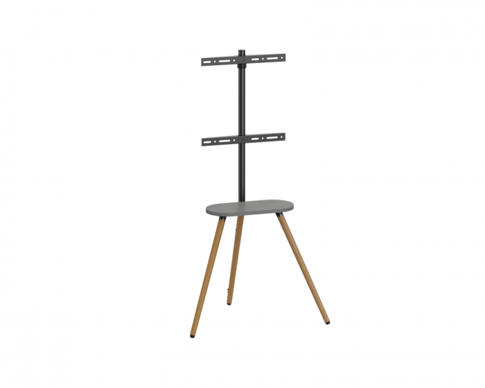 Easel Studio TV Floor Stand ist ein TV-Stativ von MaxMount, das Stil und Funktionalität kombiniert. Es wurde entwickelt, um ein komfortables Fernseherlebnis zu schaffen, ideal für Heimkinos, Büros und Ausstellungszentren. Mit einem schwenkbaren Bildschirm, der sich zwischen +45° und -45° bewegt, können Sie den Winkel einfach an Ihr Publikum anpassen. Das glanzvolle Melaminregal befindet sich direkt unter dem TV und bietet praktischen Stauraum für Fernbedienungen, tragbare Lautsprecher und andere Kleinigkeiten.Das Stativ besteht aus robusten Materialien, einschließlich Stahl, Aluminium und Melamin, wodurch es eine stabile Konstruktion mit einer Tragfähigkeit von bis zu 35 kg bietet. Mit kompakten Abmessungen von 735x508x1365 mm kann es Bildschirme zwischen 43 und 65 Zoll aufnehmen und ist dennoch VESA-kompatibel für eine einfache Installation. Das integrierte Kabelmanagementsystem sorgt dafür, dass die Kabel ordentlich und außer Sichtweite bleiben, wodurch eine saubere und aufgeräumte Installation erzielt wird. Sicherheitsfunktionen, die im Lieferumfang enthalten sind, sorgen dafür, dass das Stativ nicht umkippt.