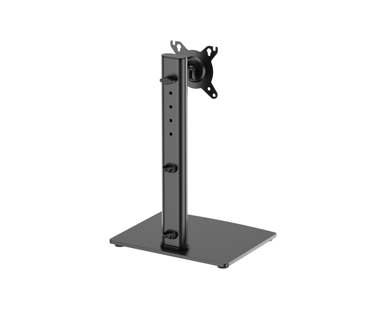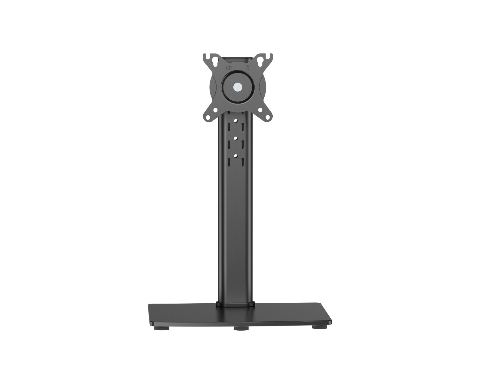 Vertikales Bildschirmstatif 17"-34" 12 kg – Schwarz ist ein Monitorhalter von MaxMount, der für Bildschirme zwischen 17 und 34 Zoll ausgelegt ist. Das Stativ bietet eine Vielzahl von Höhenverstellungsoptionen und hat eine stabile Konstruktion mit einem Sicherheitsverschluss für erhöhte Sicherheit. Mit einem unglaublich stabilen Fuß aus gehärtetem Glas wird eine sowohl funktionale als auch stilvolle Lösung für moderne Arbeitsplätze erreicht. Die kompakte Verpackung erleichtert den Transport und macht sie ideal für E-Commerce sowie Großbestellungen.Die Bauqualität des Bildschirmstatifs ist beeindruckend, bestehend aus gehärtetem Glas und Stahl, was sowohl zu Haltbarkeit als auch zu Stil beiträgt. Die integrierte Höhenverstellung ist so konzipiert, dass sie eine schnelle und einfache Anpassung ohne Werkzeuge ermöglicht, was die Benutzerfreundlichkeit maximiert. Die 360° drehbare VESA-Halterung unterstützt verschiedene Betrachtungswinkel, was die Ergonomie bei der Benutzung erhöht. Der abschließbare Drehknopf sorgt dafür, dass der Bildschirm an Ort und Stelle bleibt, unabhängig von der Einstellung. Darüber hinaus hat das Stativ Schwenkbarkeit, was es ermöglicht, den Betrachtungswinkel schnell und effizient anzupassen. Mit der Kabelführung wird eine organisierte und saubere Arbeitsfläche erleichtert.
