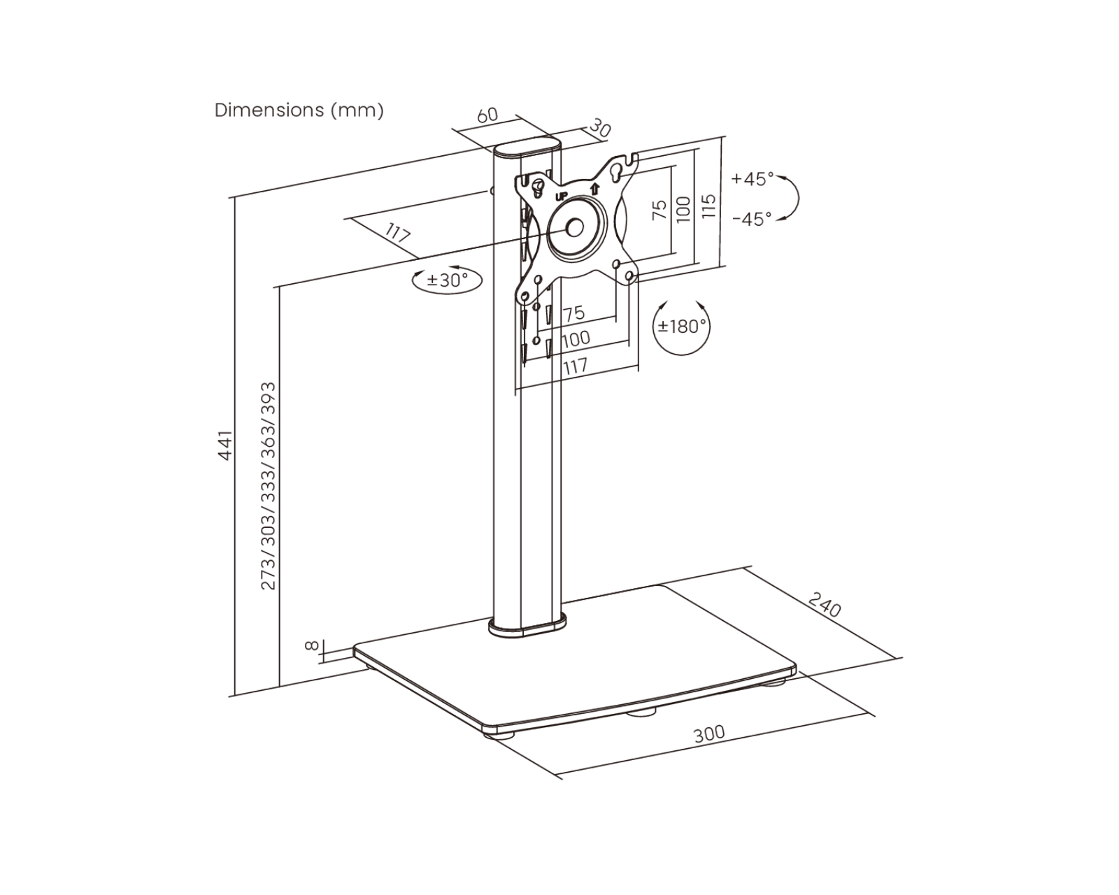 | Schwenkbereich | +30°~-30° |