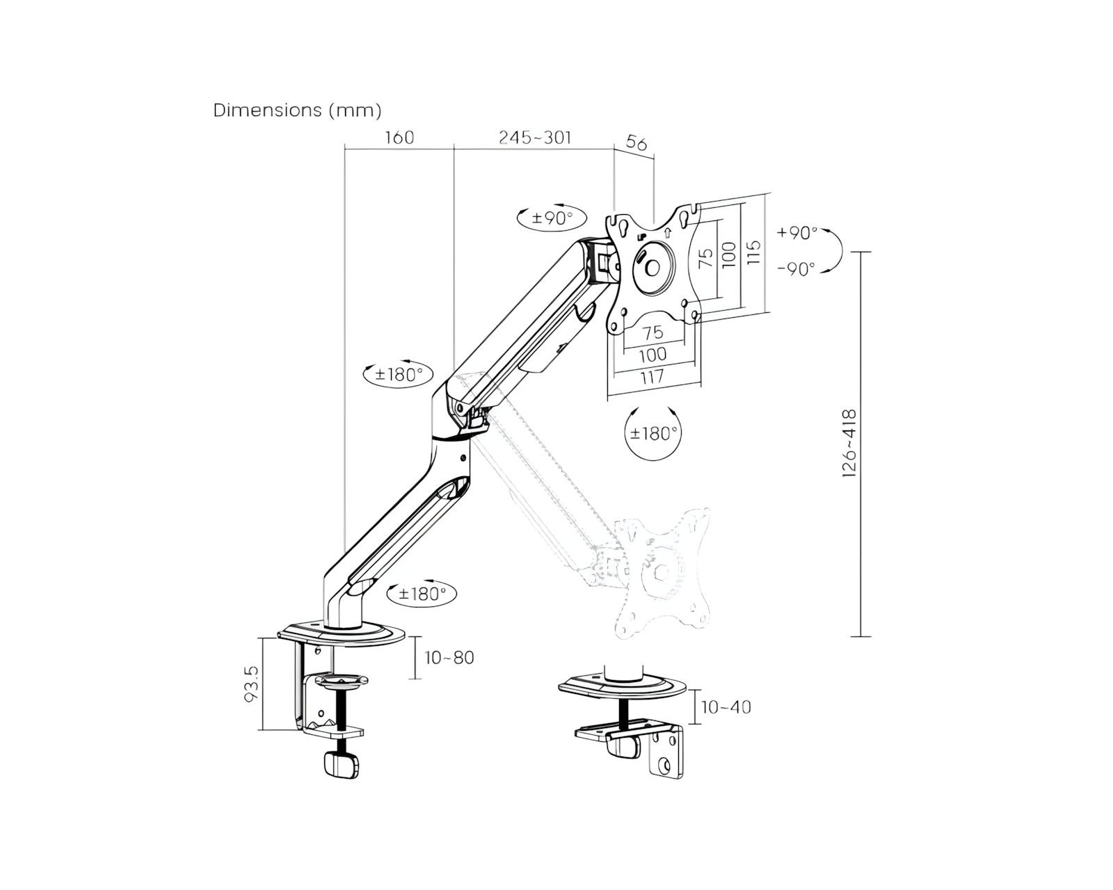- Beinhaltet Optionen für Schreibtischklemme und Durchführungsöffnung