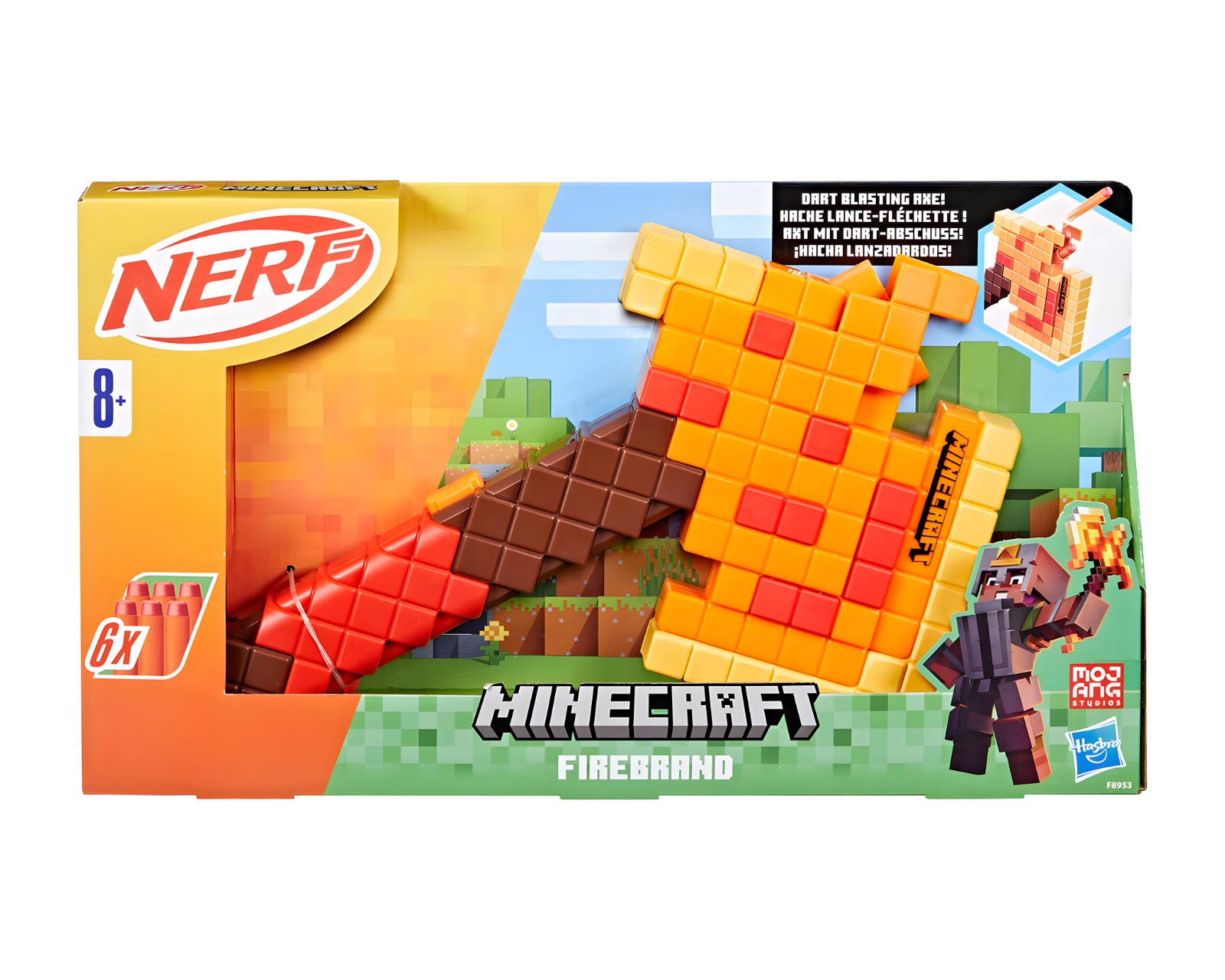 Minecraft Blaster - Firebrand ist ein Dartblaster von Nerf, inspiriert vom Spiel Minecraft: Dungeons. Das Produkt ahmt das Aussehen einer Axt im Spiel nach und ist sowohl als Spielzeug als auch als Spielwaffe konzipiert. Der Blaster kann bis zu 3 Darts gleichzeitig abfeuern, was die Möglichkeit für actionreiche Spiele sowohl für Kinder als auch für Erwachsene bietet. Er enthält 6 Nerf Elite-Darts und feuert jeweils einen Dart ab. Das Gerät ist benutzerfreundlich und benötigt nur wenige Schritte, um es in Betrieb zu nehmen. Der Axtkopf ist mit Schaumstoff ummantelt, um Sicherheit beim Spiel zu gewährleisten.Dieser Blaster ist aus nachhaltigen Materialien hergestellt, die ihn robust und für aktives Spielen geeignet machen. Das besondere Design des Blasters, inspiriert von der virtuellen Welt, die in Minecraft geschaffen wurde, macht das Produkt interessant für Gamer und Fans der Spielreihe. Das Produkt erfüllt Sicherheitsstandards und empfiehlt die Verwendung von nur offiziellen Nerf-Darts. Wenn er nicht als Aktionsspielzeug verwendet wird, bietet er auch eine kreative Spielkomponente, was ihn vielseitig macht. Es ist wichtig zu beachten, dass kleine Teile entstehen können, was bedeutet, dass er nicht für Kinder unter 3 Jahren geeignet ist.