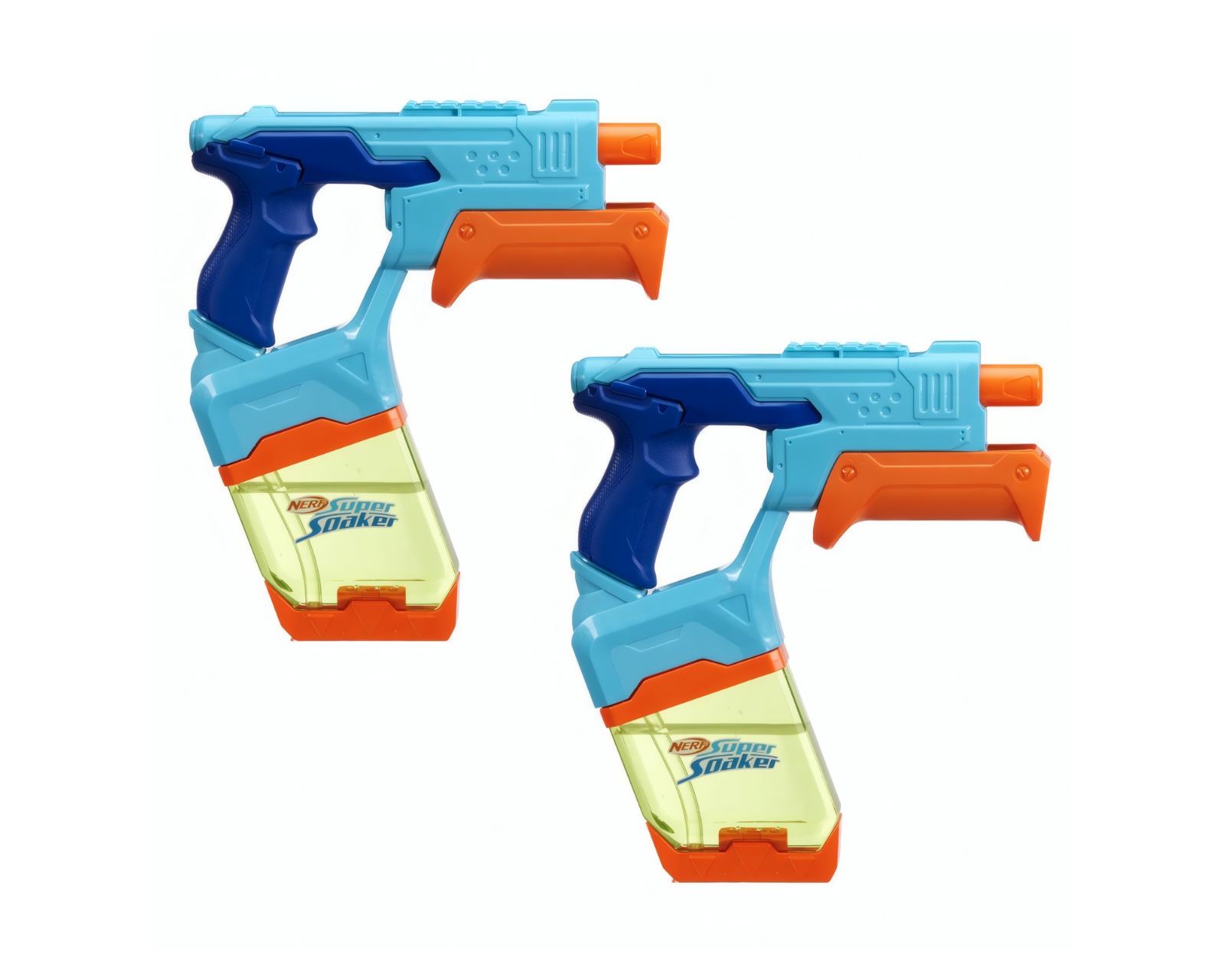 Super Soaker Dunk Fill 2-Pack ist ein Wasserblaster-Set von Nerf, das schnell nachfüllbare Tanks für sofortigen Wasserspaß bietet. Das Set enthält zwei Wasserblaster mit einer Kapazität von 300 ml pro durchsichtigem Tank, was sie ideal für Aktivitäten im Freien und Wasservergnügen macht. Das Design ist einfach zu bedienen, perfekt für Kinder, die an warmen Tagen Spaß haben möchten.Dieser Wasserblaster wurde entwickelt, um direkt nachgefüllt zu werden, indem die Tanks ins Wasser getaucht werden. Die benutzerfreundliche Pumpfunktion gibt Wasser in großen Mengen frei, wodurch jeder Kampf dynamisch und aufregend wird. Die robuste Konstruktion der Blaster sorgt für Langlebigkeit beim Spielen. In Kombination mit dem klaren Tankdesign kann der Benutzer den Wasserstand leicht sehen und unerwartetes Nachfüllen vermeiden. Das Set fördert aktives Spielen und jugendliche Interaktion, was es zu einer ausgezeichneten Aktivität für Treffen mit Freunden und Familie macht.