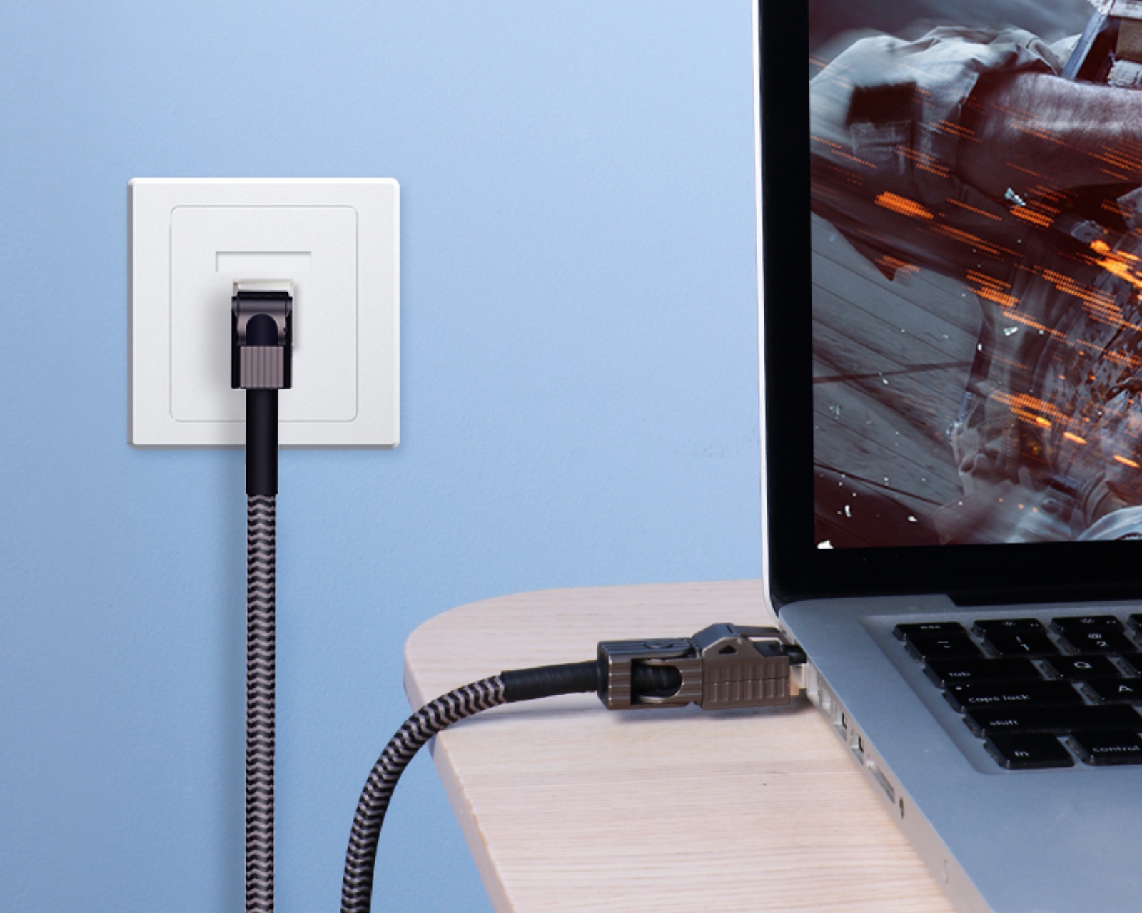 Cat8 Ethernet Kabel ENC01 1m ist ein Netzwerkkabel von Hagibis, das hohe Geschwindigkeiten und eine stabile Verbindung für verschiedene Netzwerkumgebungen bietet. Es liefert Datenübertragungsgeschwindigkeiten von bis zu 40Gbps und eine Bandbreite von 2000MHz, was es sowohl für Büros als auch für Zuhause geeignet macht, wo Netzwerkfähigkeit entscheidend ist. Das Kabel ist robust und so konzipiert, dass es verschiedene Installationsszenarien durch seine flexible Konstruktion bewältigen kann.Das Kabel hat eine 90-Grad-Drehung in vier Richtungen, was es einfach an verschiedene Installationsbedürfnisse anpassbar macht. Es ist so gestaltet, dass es durch Verdrehungen und Biegungen nicht beschädigt wird, was die Lebensdauer und die Nutzbarkeit in engen Räumen erhöht. Das Material besteht aus einem hochfesten geflochtenen Gehäuse und einer PVC-Schutzbeschichtung, die eine starke und langlebige Konstruktion bietet. Es hat auch ein mehradriges geschirmtes Design, das einen reinen Kupferkern und doppelseitige Aluminiumfolie umfasst, um maximale Signalqualität zu gewährleisten.
