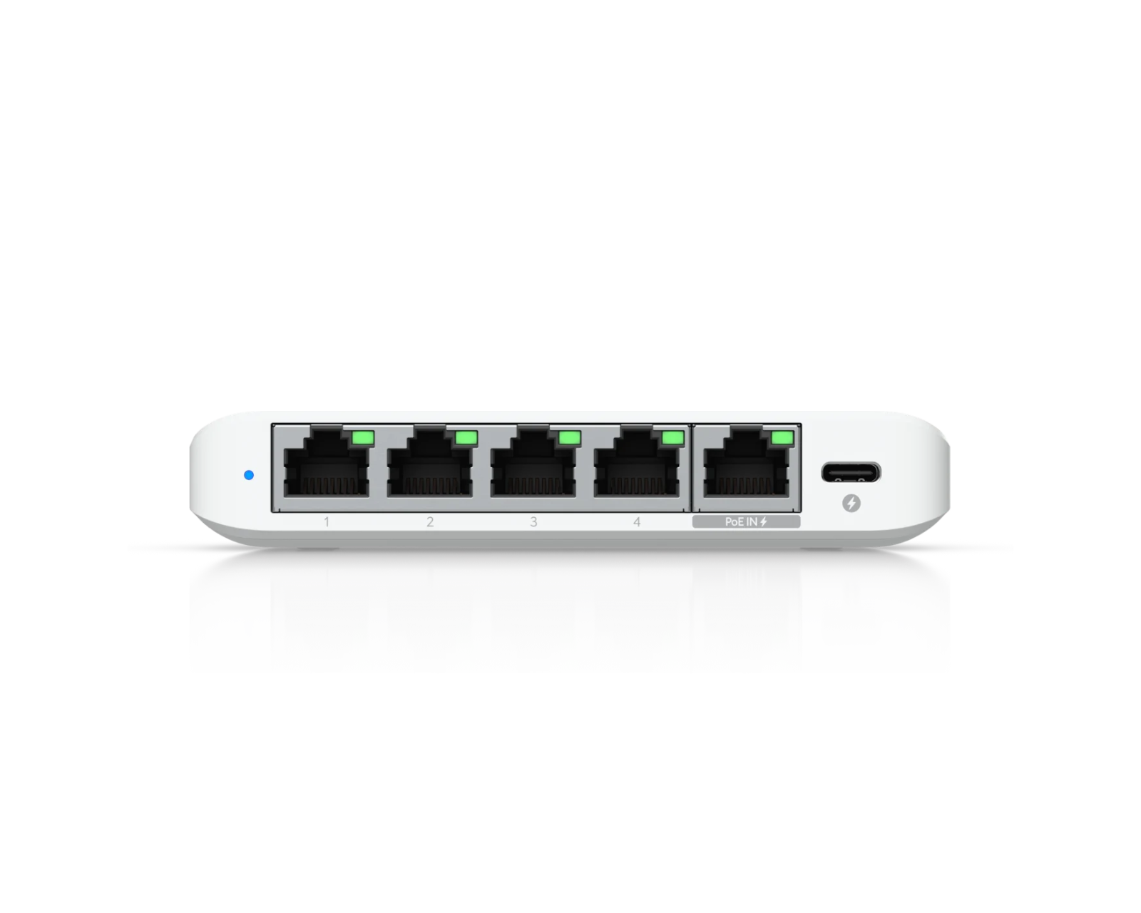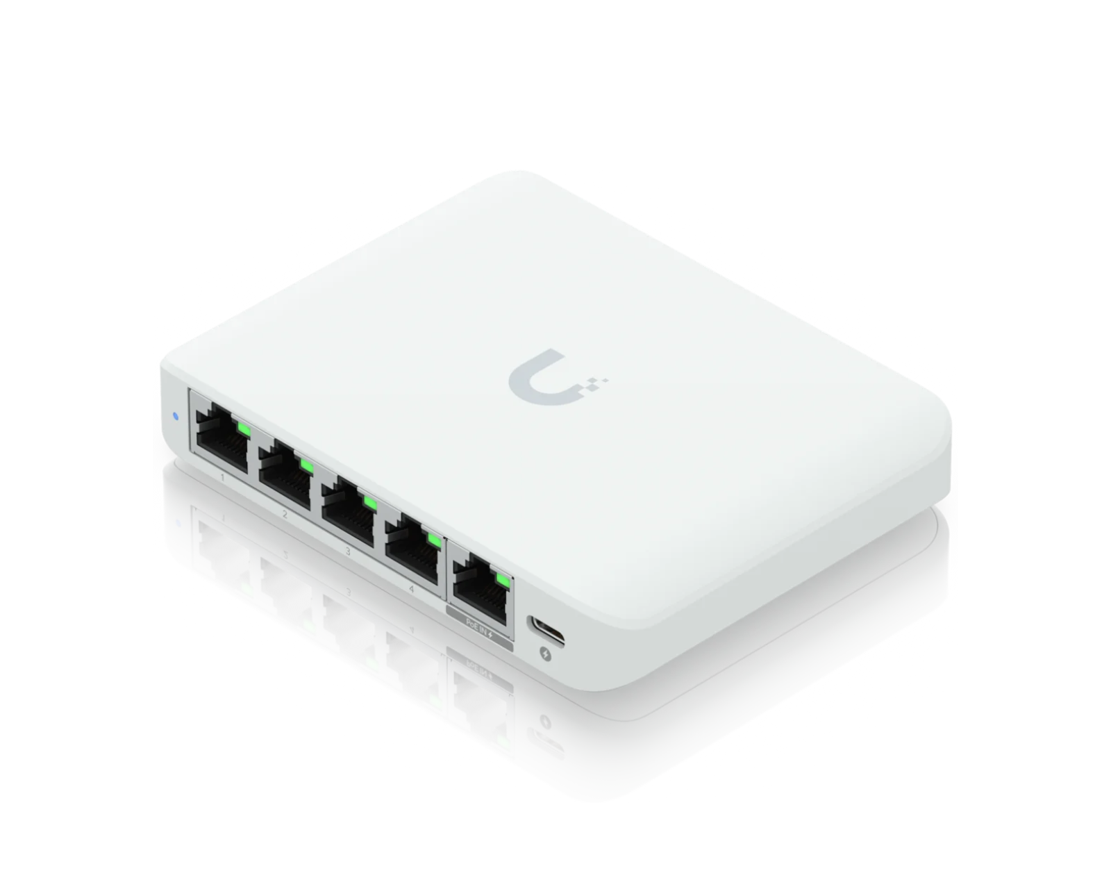 Der UniFi USW Flex ist ein 5-Port 2,5G-Netzwerk-Switch von Ubiquiti, der erweiterte Ethernet-Konnektivität mit einer Kapazität von bis zu 2,5 Gbit/s bietet. Dieser Switch verfügt über vier 2,5-Gbit/s-Ethernet-Ports und einen 2,5-Gbit/s-Ethernet-Port mit Power over Ethernet (PoE)-Unterstützung. Er eignet sich ideal für den Einsatz im Heimbereich oder in kleinen Büroumgebungen, in denen hohe Geschwindigkeit und Flexibilität gefragt sind.Das Gerät hat ein kompaktes Design mit den Maßen 117,1 mm (B) x 90 mm (T) x 21,2 mm (H) und wiegt 206 g. Die Stromversorgung erfolgt über PoE oder den mitgelieferten USB-C-Adapter. Mit einer Gesamtbandbreite von 12,5 Gbit/s und einem Stromverbrauch von 5 W wird die Funktionalität durch die Möglichkeit zur Verwaltung von Netzwerkeinstellungen weiter verbessert. Der interne PoE-Einsatz arbeitet mit einer Spannung zwischen 44 und 57 V DC für eine effiziente Stromversorgung.