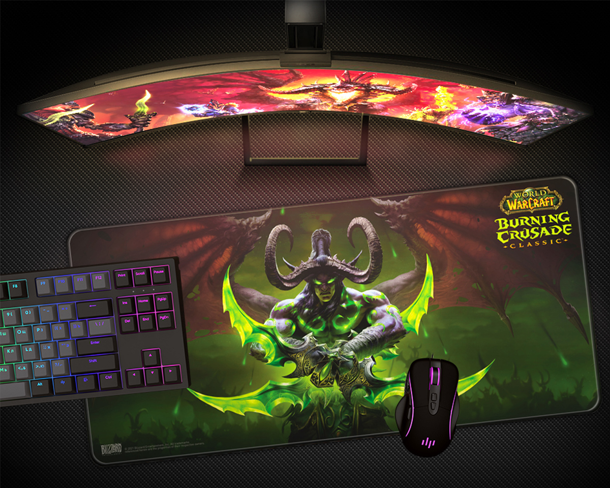 Blizzard - World of Warcraft - Illidan - Gaming-Mauspad ist eine Mauspad, das für Gamer entworfen wurde, die Präzision und Stil schätzen. Diese Gaming-Mauspad ziert eine farbenfrohe Illustration von Illidan Stormrage, einer der beliebtesten Charaktere aus dem Klassiker World of Warcraft: Burning Crusade. Mit großzügigen Maßen von 900 x 420 mm und einer Dicke von 4 mm bietet es eine geräumige Fläche für komplexe Bewegungen ohne Einschränkungen.Das Mauspad hat eine wasserdichte Oberfläche, was bedeutet, dass Verschüttungen und Flüssigkeiten dich während intensiver Spielsitzungen nicht beunruhigen müssen. Die rutschfeste Gummibasis stellt sicher, dass das Mauspad während des gesamten Spiels an seinem Platz bleibt, was zu konsistenter Kontrolle und Genauigkeit bei schnellen Bewegungen beiträgt. Mit einem Design, das Funktionalität und Ästhetik vereint, ist dies ein Mauspad, das jede Gamer-Setup ergänzt.