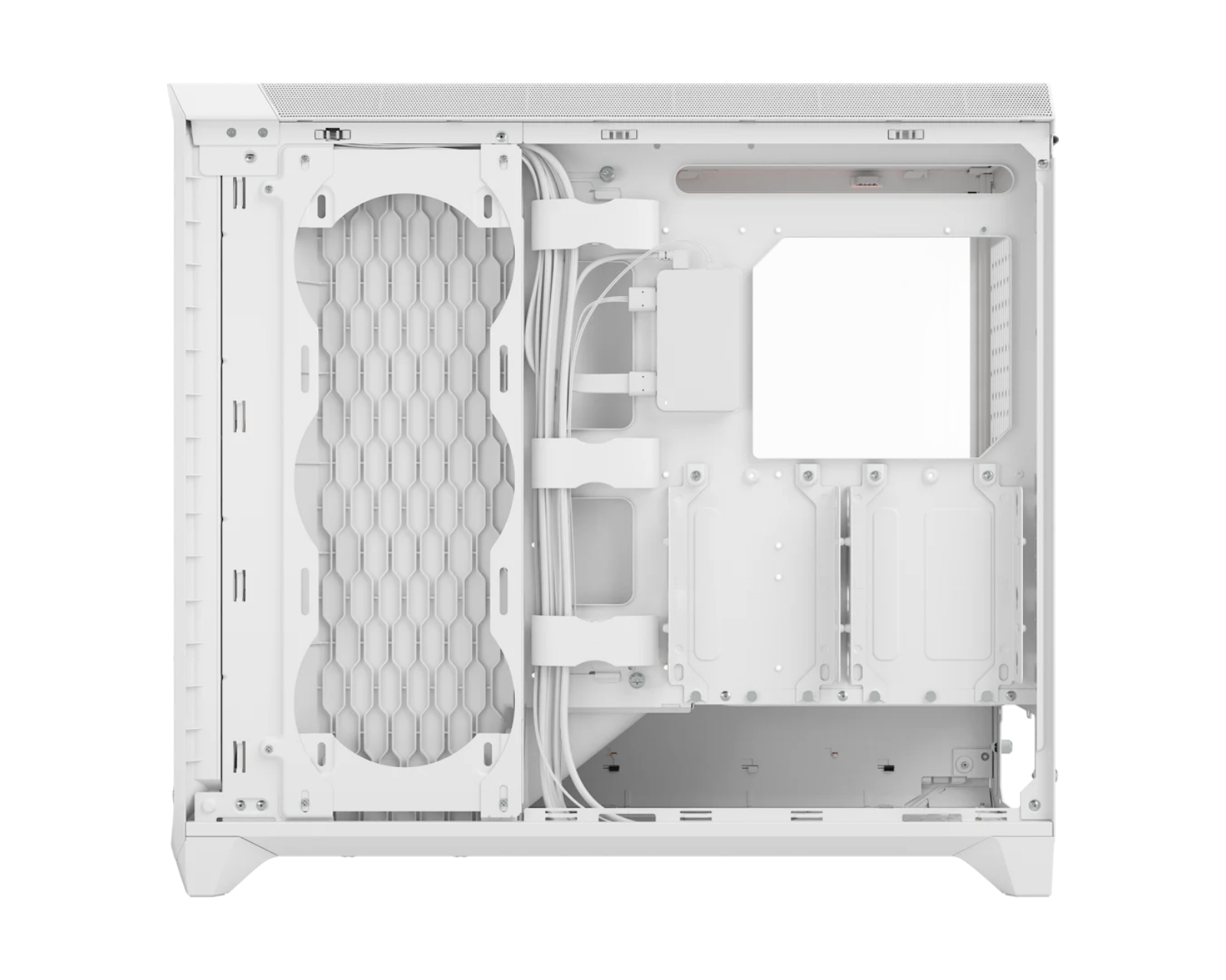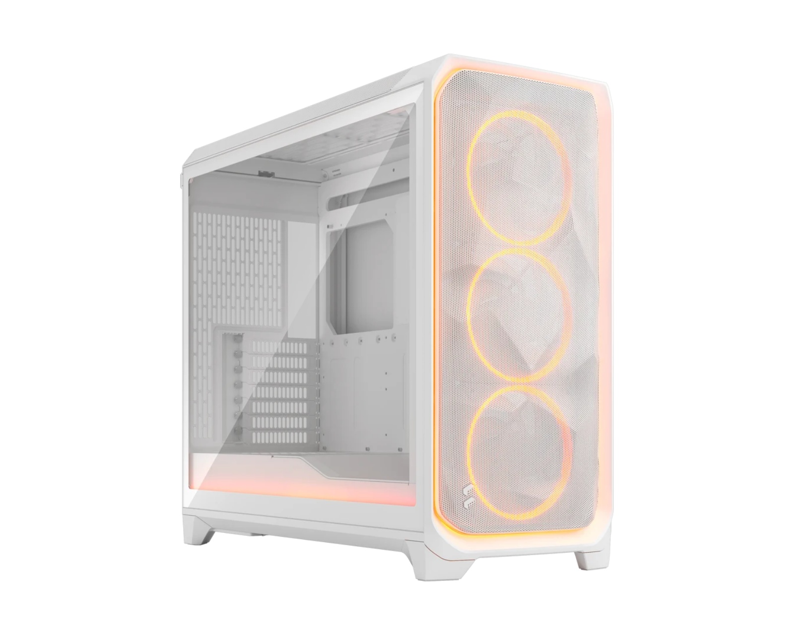 Meshify 3 XL ist ein Computergehäuse von Fractal Design, das fortschrittliche Kühlung und ein aerodynamisches Aussehen in einem geräumigen Formfaktor bietet. Es ist das Ergebnis von Fortschritten im Gehäusedesign und enthält drei leistungsstarke Momentum-Lüfter sowie eine verbesserte atmosphärische Beleuchtung in den Ambience Pro RGB-Versionen. Das Gehäuse ist mit Grafikkarten von bis zu 512 mm Länge und E-ATX-Motherboards (330 mm) kompatibel.Die Verarbeitungsqualität ist hoch, mit einem aerodynamischen Design und einer Mesh-Front für optimalen Luftstrom. Es bietet Platz für bis zu drei 140 mm Lüfter an der Vorderseite und sorgt für ein reibungsloses Bau-Erlebnis durch einfach abnehmbare Paneele, einschließlich einer schiebbaren Oberseite. Um das Kabelmanagement zu erleichtern, verfügt das Gehäuse über ein sauberes und geräumiges Interieur mit Kabelkanälen und neuen Kabelausrichtungs-Systemen. Es gibt auch Unterstützung für benutzerdefinierte Kühlsysteme mit Platz für bis zu einen 420 mm Radiator an der Oberseite.