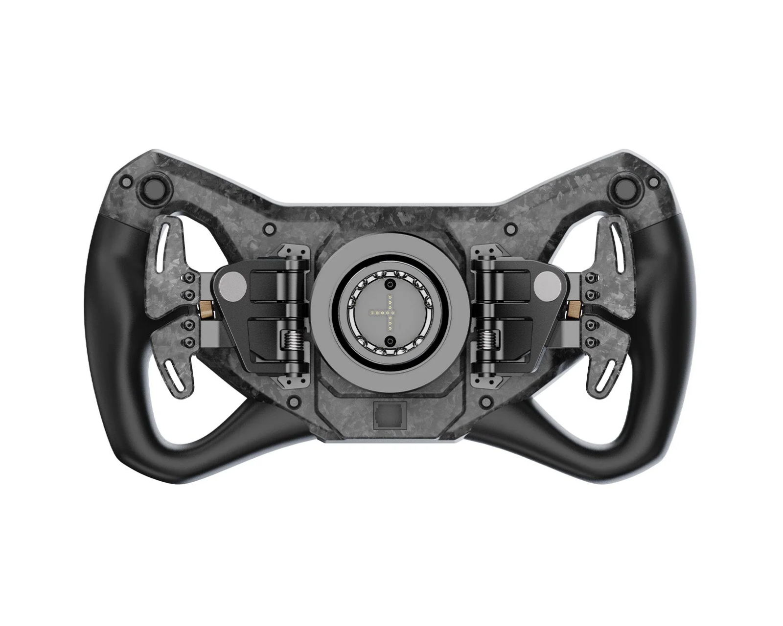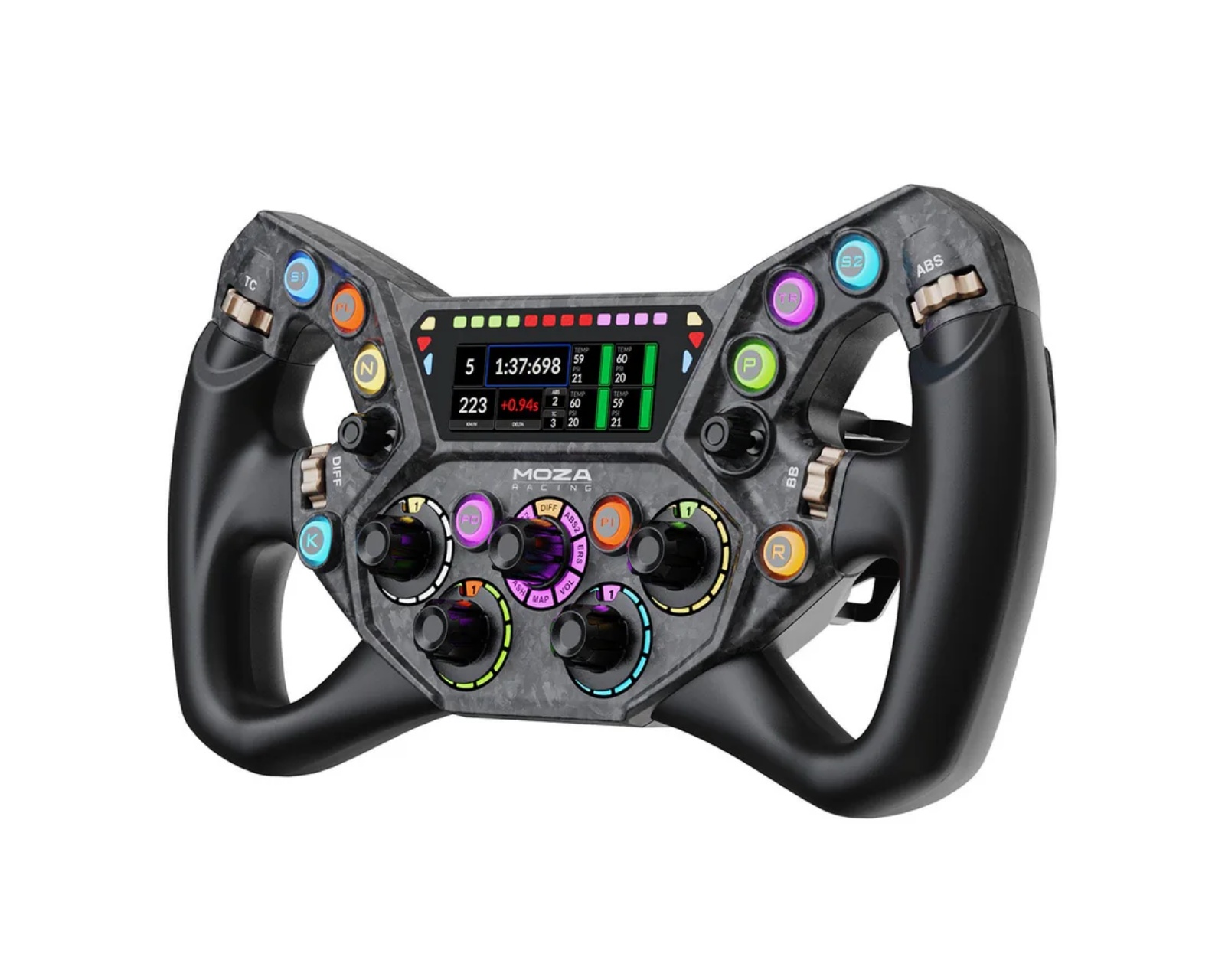 KS Pro Racing Rad ist ein Rad von Moza Racing, das innovatives Design und hohe Leistung für Sim-Racing-Enthusiasten kombiniert. Mit einem ergonomischen Layout und einem 2,99-Zoll-Bildschirm bietet das intuitive Kontrollsystem des Rades ein tiefgreifendes und anpassbares Fahrerlebnis. Der hochauflösende Bildschirm hat eine Auflösung von 268x800 und eine Aktualisierungsrate von 60 Hz, was eine detaillierte Visualisierung wichtiger Informationen während des Rennens ermöglicht.Das Rad besteht aus einem kohlenstofffaserverstärkten Verbundmaterial, das hohe Festigkeit bietet, ohne das Gewicht zu beeinträchtigen, was zu einer Struktur führt, die ein robustes und leichtes Design gewährleistet. Das Rad ist mit anpassbaren RGB-Beleuchtungssystemen mit bis zu 16,7 Millionen Farbkombinationen ausgestattet, wodurch der Benutzer schnell Einstellungen identifizieren kann. Mit zehn RGB-Drehzahllichtern und sechs Flaggenlichtern kann der Fahrer Echtzeitinformationen über die Motorumdrehungen und den Rennstatus erhalten. Die Paddles des Rades sind aus magnetischem Kohlenstoff mit Hall-Sensoren hergestellt und bieten zahlreiche programmierbare Funktionen für reibungslose Schaltvorgänge.