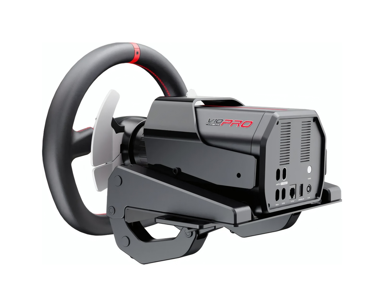 V10 Pro ist ein Rennsimulator von PXN, der ein professionelles Spielerlebnis für PC-, PS4-, Xbox One- und Xbox Series X|S-Spieler bietet. Die Spezifikationen umfassen ein ergonomisches D-Format-Lenkrad mit einem Durchmesser von 270 mm, 17 programmierbare Tasten und F1-ähnliche Schaltwippen für präzise Kontrolle und Reaktion. Das Set ist mit Magnet-Hall-Effekt-Pedalen ausgestattet, die hohe Präzision bei der Beschleunigung und dem Bremsen bieten, was zusammen mit dem 3,2 Nm direkt angetriebenen Servomotor des Systems ein realistisches Gefühl von Force Feedback vermittelt. Die intelligente Temperaturkontrolle 2.0 sorgt dafür, dass das System während langer Spielsitzungen kühl bleibt. Die Montageklemmen sind kompakt und passen einfach auf die meisten Schreibtische, was dieses Kit für kleine Räume, Studentenwohnungen oder Wohnzimmer geeignet macht.V10 Pro ist mit hochwertigen Komponenten gebaut, die Stabilität und Haltbarkeit bieten. Der direkte Antrieb des Servomotors ermöglicht schnelle und präzise Bewegungen, die das Spielerlebnis verbessern. Die Pedale sind einstellbar, um den Komfort des Benutzers zu optimieren, und sind so konzipiert, dass sie durch Hall-Effekt-Technologie eine genaue Reaktion liefern. Das Lenkrad, mit mehreren Programmierungsoptionen, kann über eine dedizierte PXN-App angepasst werden, was den Gamern die Möglichkeit gibt, ihr Erlebnis zu personalisieren.