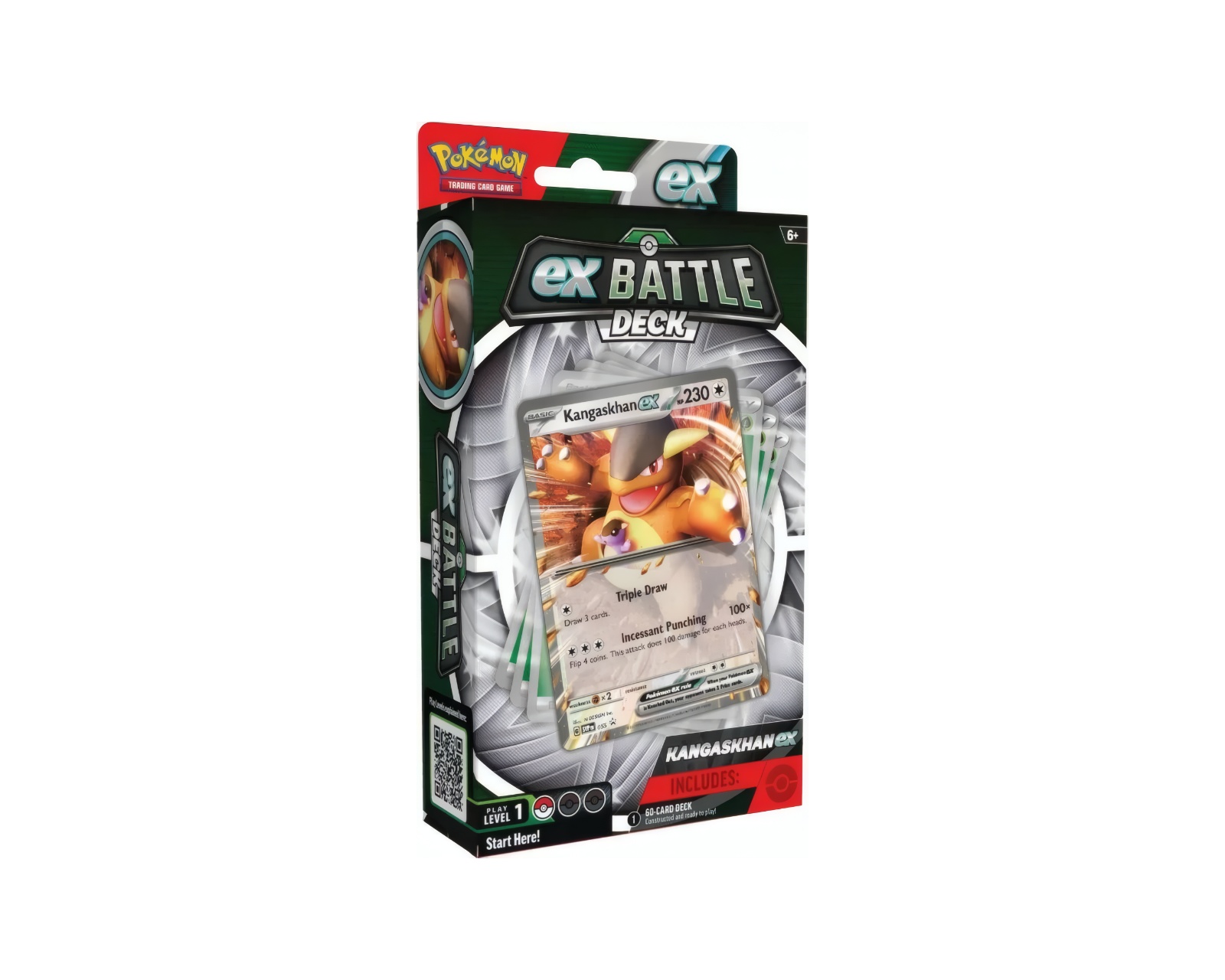 Battle Deck Greninja/Kangaskhan ist ein Sammelkartenspiel von Pokémon, das aus zwei thematischen Decks besteht, Greninja ex und Kangaskhan ex. Diese Decks wurden am 6. Oktober 2023 veröffentlicht und sind für Anfänger im Pokémon Trading Card Game konzipiert. Jedes Deck enthält 60 Karten mit einer festen Auswahl, einschließlich der ausgewählten Pokémon wie Pokémon ex. Der Inhalt der Decks ist sorgfältig formuliert, um ein ausgewogenes Spielerlebnis zu bieten.Die Bauqualität der Battle Decks ist hoch, und jedes Deck wird mit einer Reihe von Komponenten geliefert, wie z. B. einer Deckbox, Schadensmarkern, einer Einzelspieler-Spielmatte, sowie einem Regelbuch und einem Schnellleitfaden. Zusätzlich sind drei Referenzkarten und ein TCGL-Code-Karte sowie eine große Münze enthalten. Das Erweiterungsformat „ex“ in diesen Decks wird Spieler ansprechen, die die strategischen Dimensionen des Spiels erkunden möchten. Das Design und der Inhalt der Decks zielen darauf ab, Anfängern zu helfen, die grundlegenden Säulen des Spiels zu verstehen.