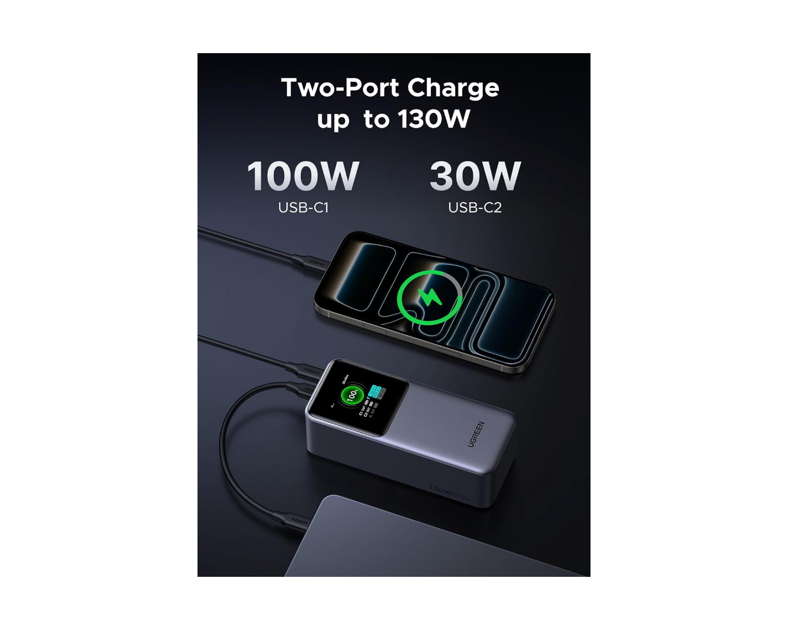 Powerbank mit Schnellladefunktion, die über eine beeindruckende Kapazität von 130 W und 20.000 mAh verfügt und sich somit perfekt eignet, um Ihre Geräte den ganzen Tag über aufgeladen zu halten. Es verfügt über zwei USB-C-Anschlüsse und einen USB-A-Anschluss, sodass Sie mehrere Geräte gleichzeitig laden können. Darüber hinaus ist es mit einem TFT-Bildschirm ausgestattet, der den aktuellen Akkustand und Ladestatus anzeigt und Ihnen so einen klaren Überblick darüber gibt, wie viel Energie noch übrig ist.Das leichte Design der Powerbank macht sie ideal sowohl für Reisen als auch für den täglichen Gebrauch. Dank seiner kompakten Größe finden Sie problemlos Platz, um ihn überall hin mitzunehmen, was ihn zum perfekten Begleiter sowohl für Geschäftsreisen als auch für Freizeitabenteuer macht. Ganz gleich, ob Sie auf dem Weg zur Arbeit oder auf einem Wochenendausflug sind oder Ihr Gerät nur tagsüber aufladen müssen, diese Powerbank bietet eine praktische und bequeme Lösung, um Ihre Geräte aufgeladen und einsatzbereit zu halten.