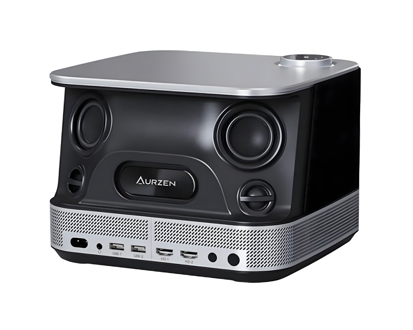 Boom 3 ist ein Multimedia-Projektor von Aurzen, der hochwertige Full HD-Bilder und ein fortschrittliches Audiosystem bietet. Mit einer Helligkeit von 500 ANSI-Lumen und Unterstützung für 1080p und 4K-Inhalte bietet er ein klares und lebendiges Bilderlebnis. Der Projektor ist außerdem mit Dolby Audio-Technologie und vier leistungsstarken Lautsprechern für ein reichhaltiges Klangerlebnis ausgestattet.Das kompakte Design von Boom 3 beherbergt eine 36-Watt-Audioanlange, die aus zwei Full-Range- und zwei Tweeter-Lautsprechern sowie einem Bass-Membran für ein dynamisches Klangbild besteht. Der Projektor kann sich einfach an verschiedene Betrachtungsumgebungen anpassen, mit AI Auto Focus und Keystone-Korrektur, um eine optimale Bildqualität sicherzustellen, ohne manuell ajustiert werden zu müssen. Er läuft unter webOS, was eine nahtlose Nutzung populärer Apps wie Netflix und YouTube direkt vom Projektor aus ermöglicht.