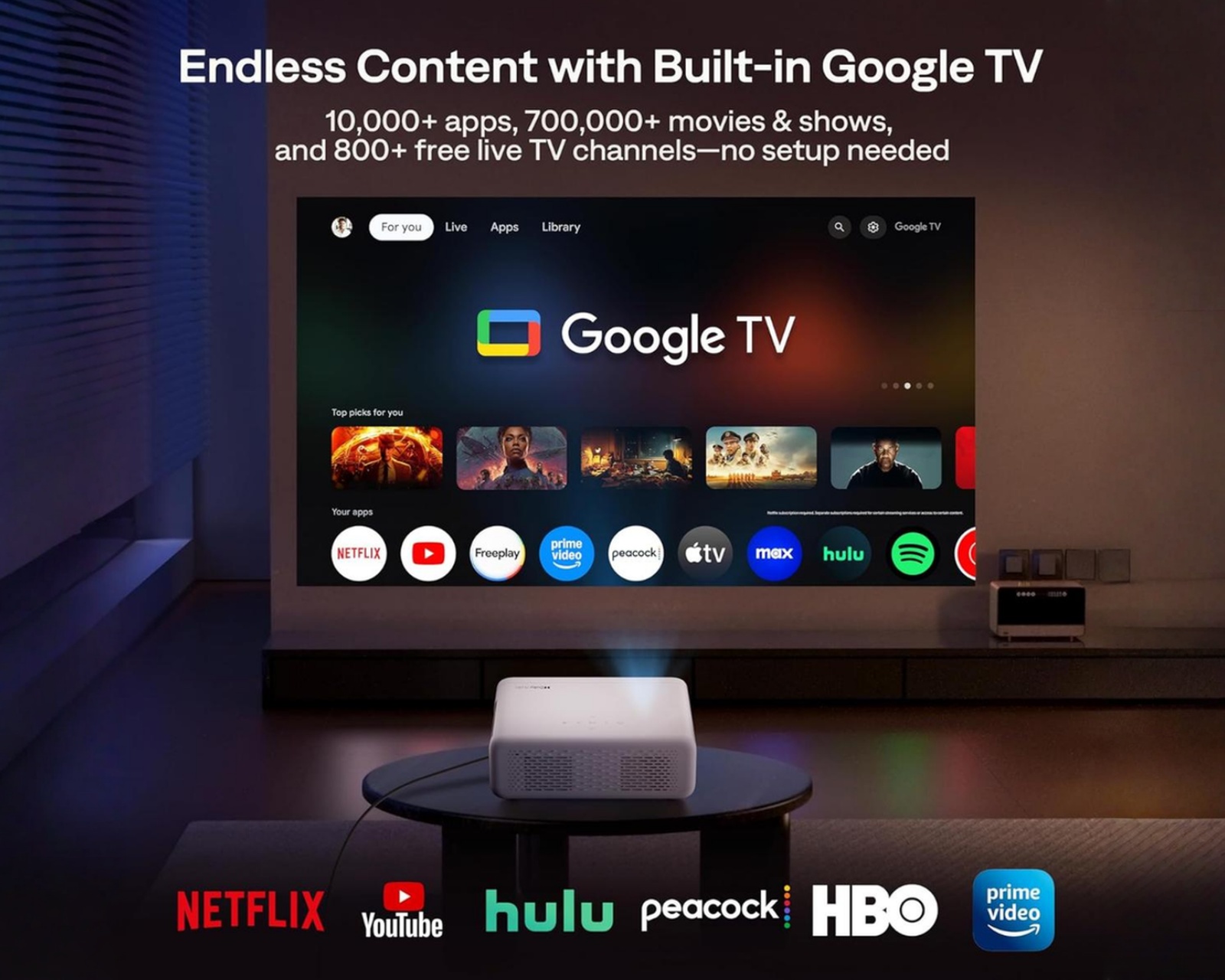 Eazze D1G ist ein Multimedia-Projektor von Aurzen, der hohe Bildqualität mit intelligenten Funktionen kombiniert. Mit seinem integrierten Google TV-System erhält der Benutzer schnellen Zugriff auf beliebte Streaming-Dienste, ohne zusätzliche Geräte anschließen zu müssen. Die native Full HD-Auflösung und die Unterstützung für HDR10 machen diesen Projektor ideal für das Ansehen von Filmen, Spielen und Präsentationen.Der Projektor ist so konzipiert, dass er die Benutzererfahrung optimiert. Mit automatischer Bildanpassung, einschließlich Auto Focus und Keystone-Korrektur, passt sich das Bild schnell an, selbst wenn der Projektor in einem Winkel positioniert ist. Er kann auch 4K-Bilder über externe Geräte via HDMI anzeigen, was eine hervorragende Bildqualität bietet. Darüber hinaus bietet er drahtloses Streaming von Mobilgeräten über die integrierte Chromecast-Funktion. Er verfügt außerdem über zwei 8-Watt-Lautsprecher mit Dolby Audio, die das Klangerlebnis weiter verbessern.