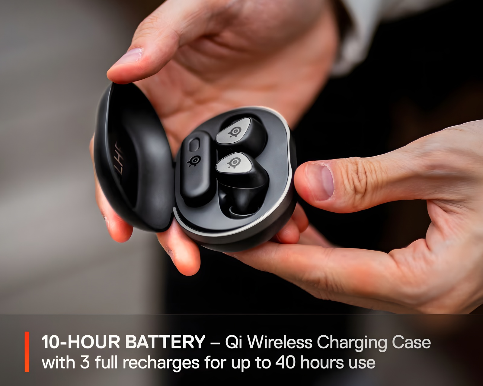 GameBuds haben eine beeindruckende Akkulaufzeit von 10 Stunden, was es Ihnen ermöglicht, Ihre Spiele ohne Unterbrechung zu genießen. Darüber hinaus bietet das mitgelieferte Etui eine zusätzliche Akkukapazität von 30 Stunden, was bedeutet, dass Sie Ihre Kopfhörer mehrmals aufladen können, bevor Sie sie wieder anschließen müssen. Dies macht GameBuds zur perfekten Wahl für Spieler, die unterwegs sind oder lange Sitzungen spielen.