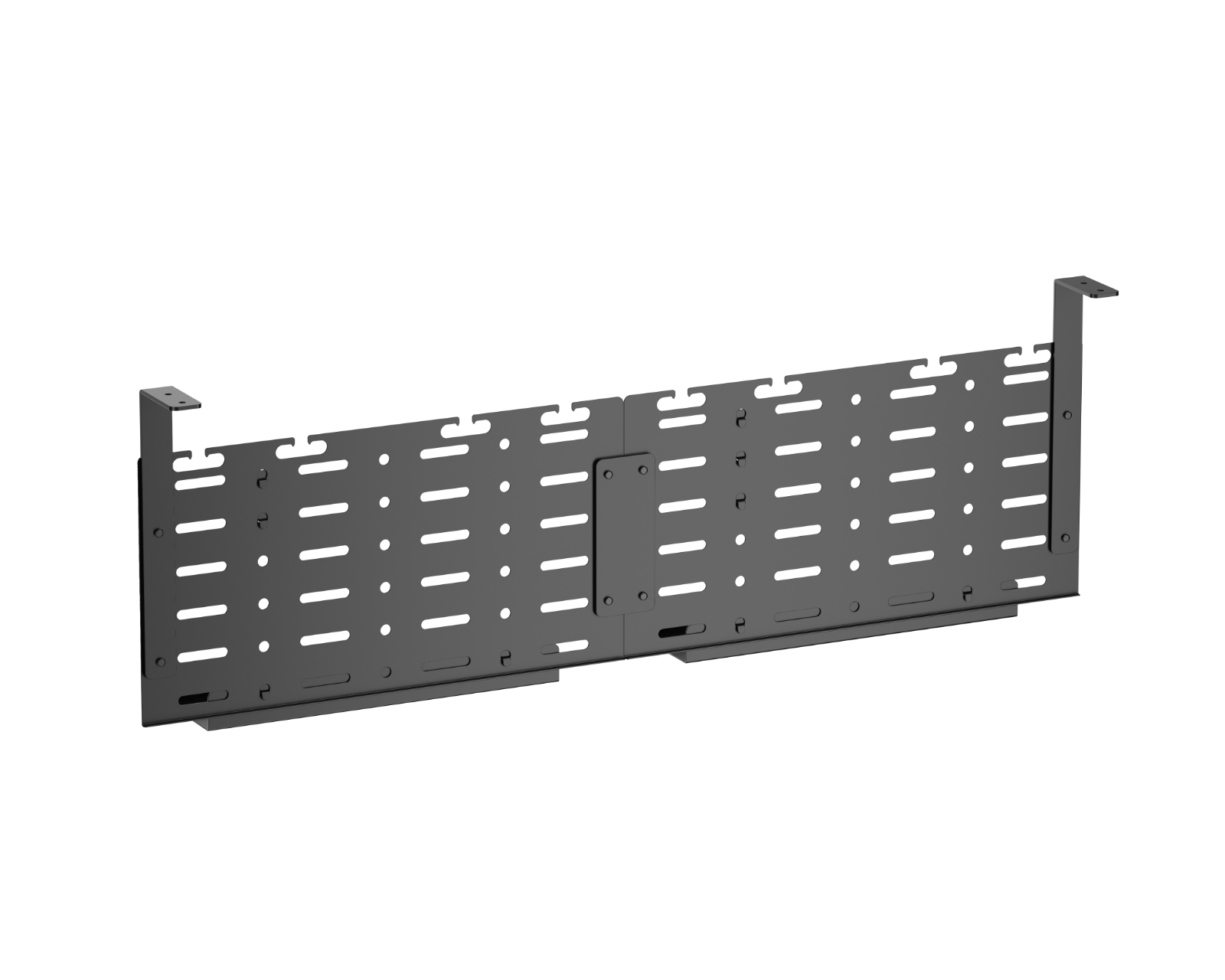 Vertikaler Kabelkorb für den Schreibtisch ist eine Kabelmanagementlösung von MaxMount. Er hat ein einfaches Design, das Kabel und Stromleitungen verbirgt, um einen sauberen Arbeitsplatz zu schaffen. Die erweiterte Ablage kann für Schreibtische unterschiedlicher Größen angepasst werden und bietet einfachen Zugang zu Kabeln und Stromschienen, was die Installation und Wartung erleichtert.Das Material des Kabelkorbs ist langlebig und von hoher Qualität, was eine langfristige Nutzung gewährleistet. Er ist speziell so gestaltet, dass er unter dem Tisch klemmt und stabil steht. Er ist effektiv mit mehreren Kabelöffnungen ausgestattet, die es Ihnen ermöglichen, die Bewegungen der Kabel zu verwalten und sie ordentlich ohne Verwirrung zu verteilen. Die verschiedenen Kabelschlitze helfen dabei, die Kabel zu organisieren und zu stabilisieren, was zu einer besseren und effizienteren Arbeitsumgebung beiträgt.